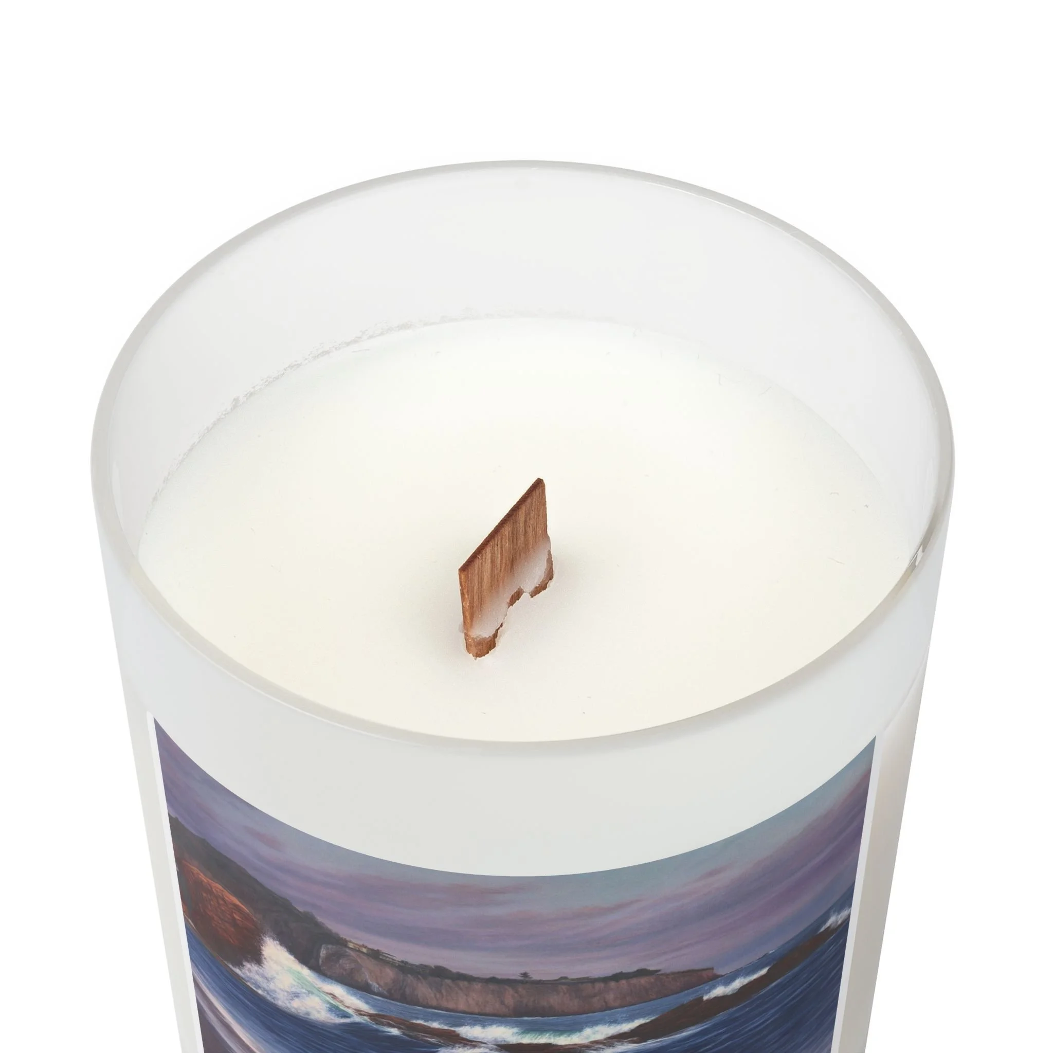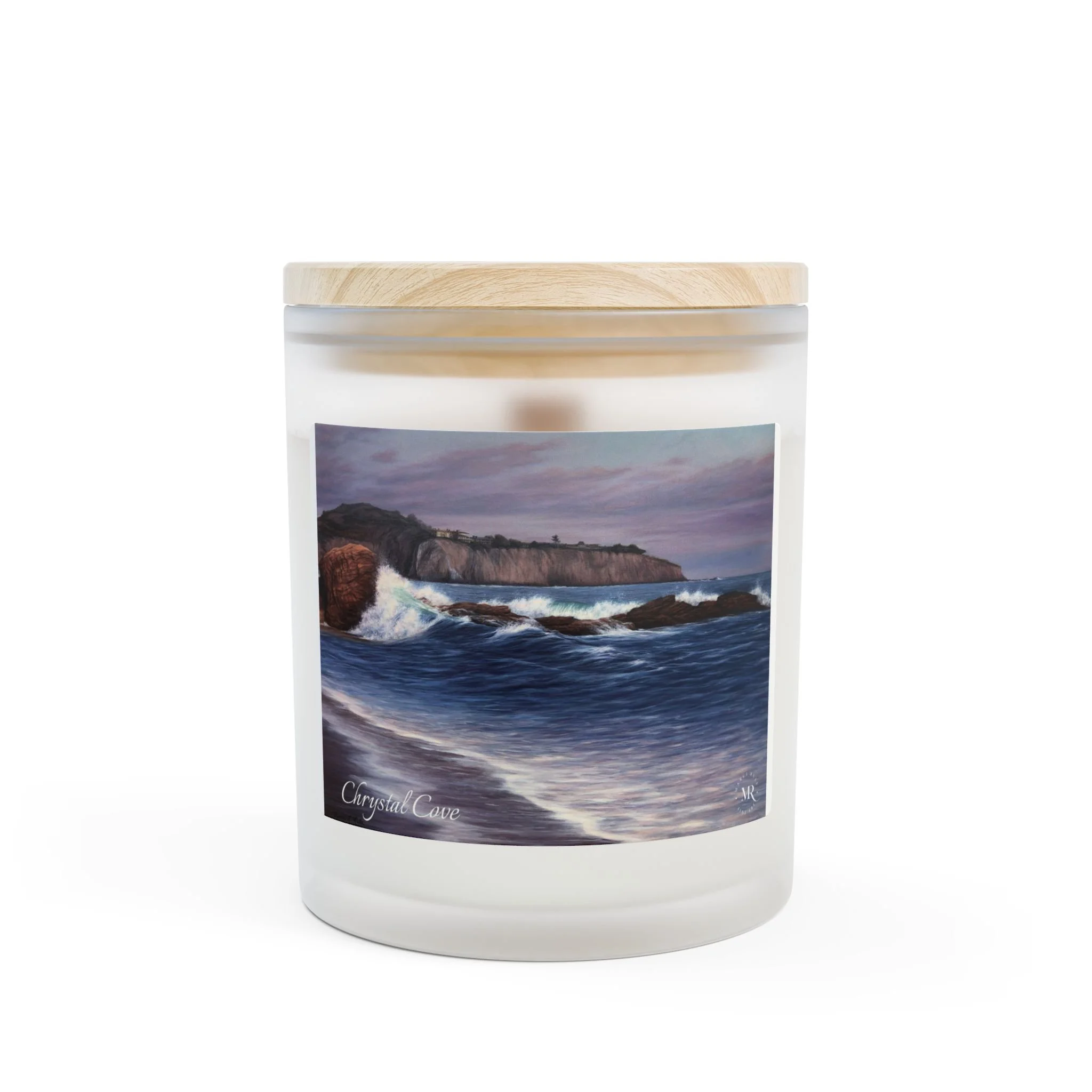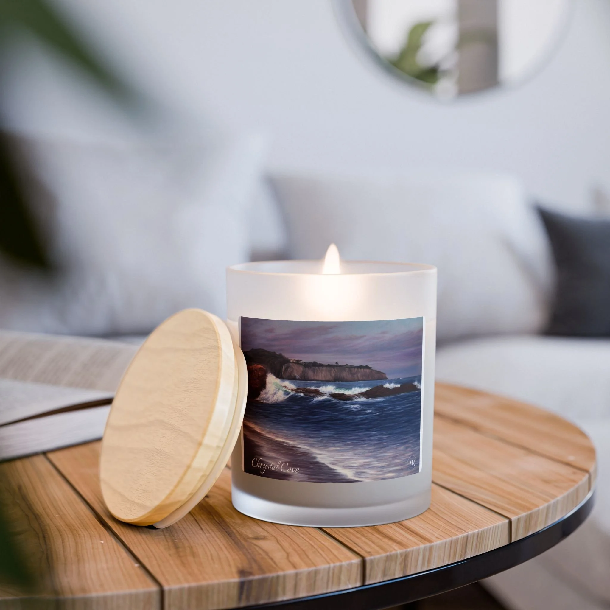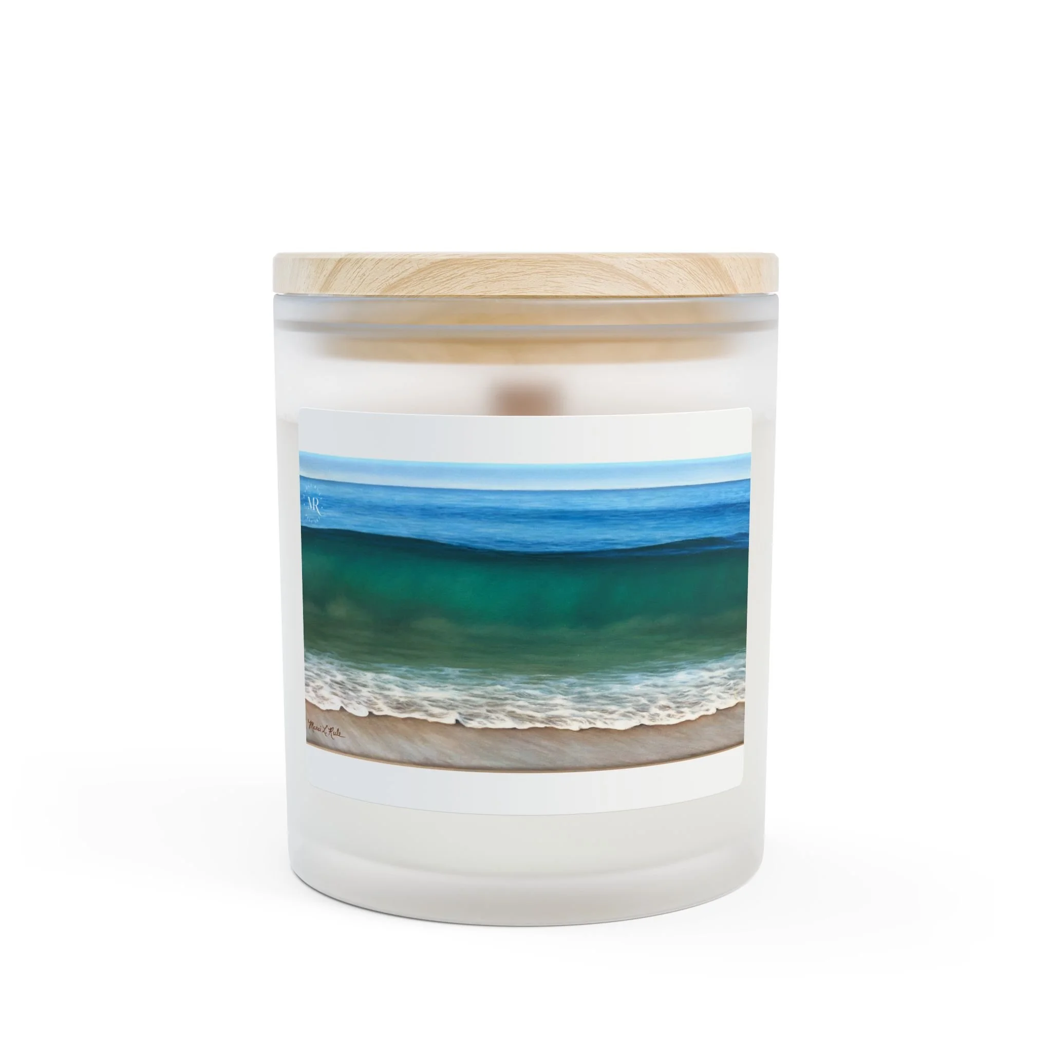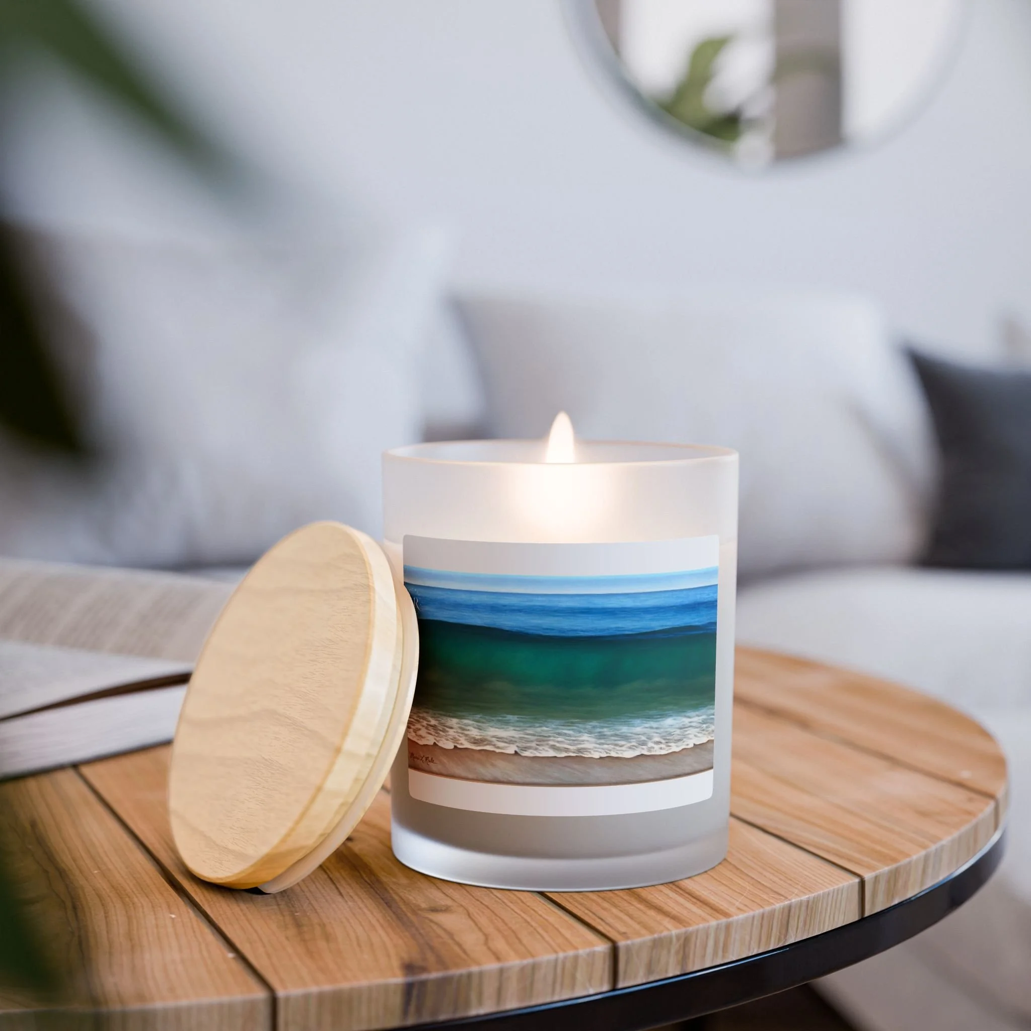 Frosted Scented Candle, Coastal Oil Painting 11oz, Serene Home Decor, Relaxing Ocean Vibes, Gift for Beach Lovers, Zen Candle
