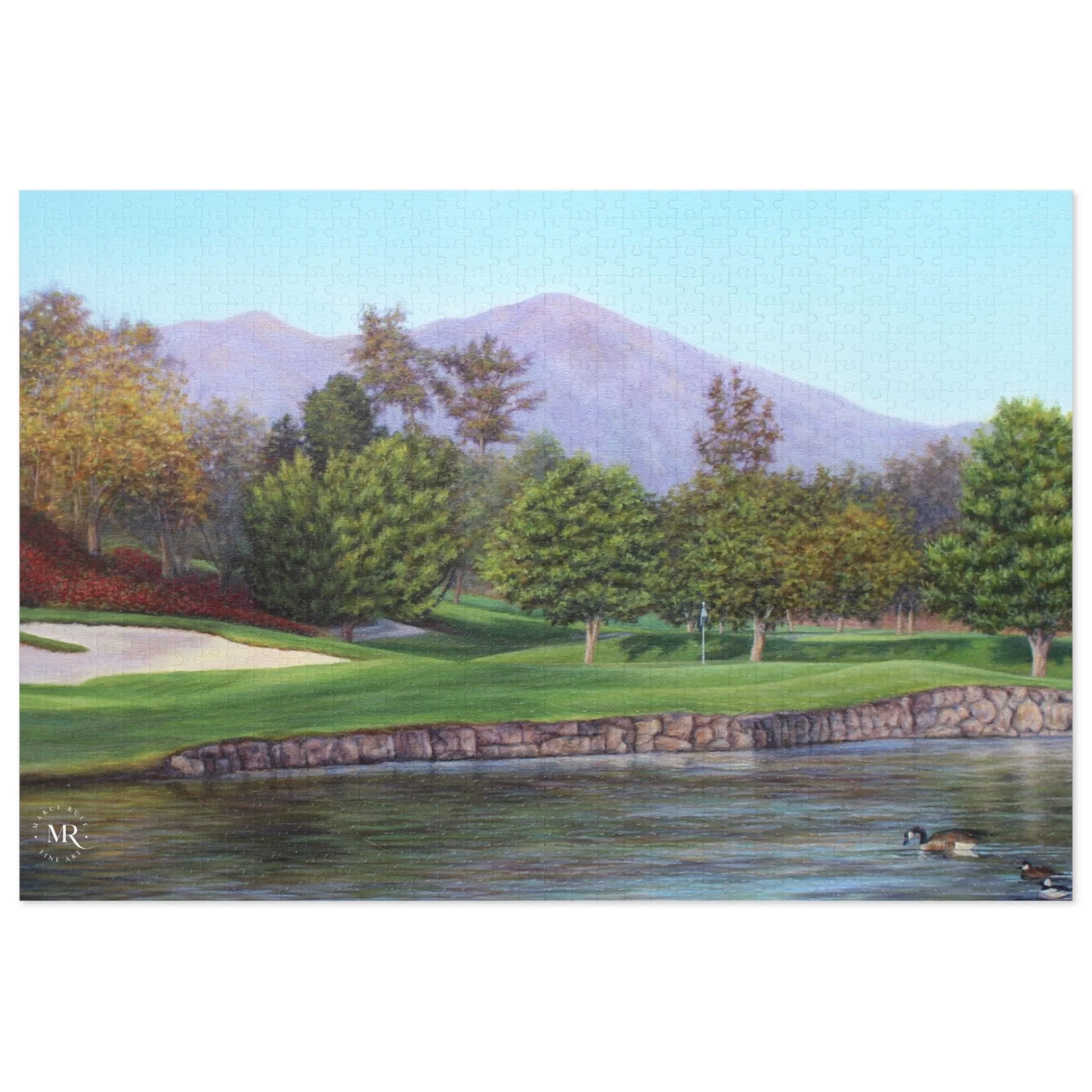 Immerse yourself in the serene landscape of Mission Viejo Golf Course in California, with this intricately detailed painting by artist Marci Rule. Perfect for golf enthusiasts and art lovers, this custom puzzle comes in various piece options to challenge and entertain you. A great gift for birthdays, holidays, groomsmen & best man gifts and special occasions.