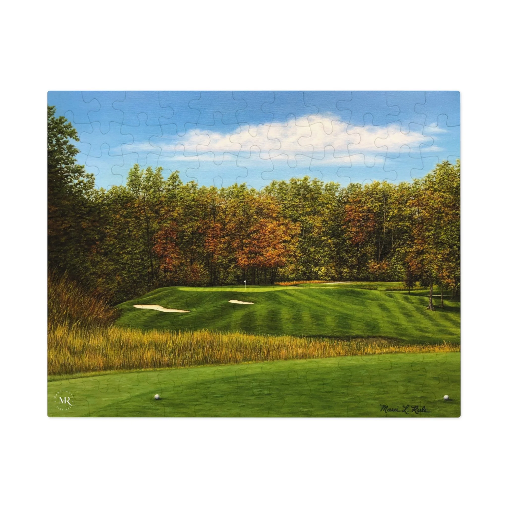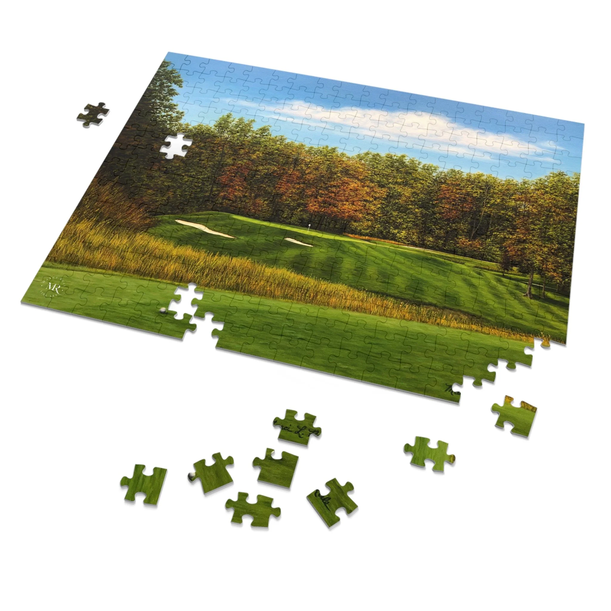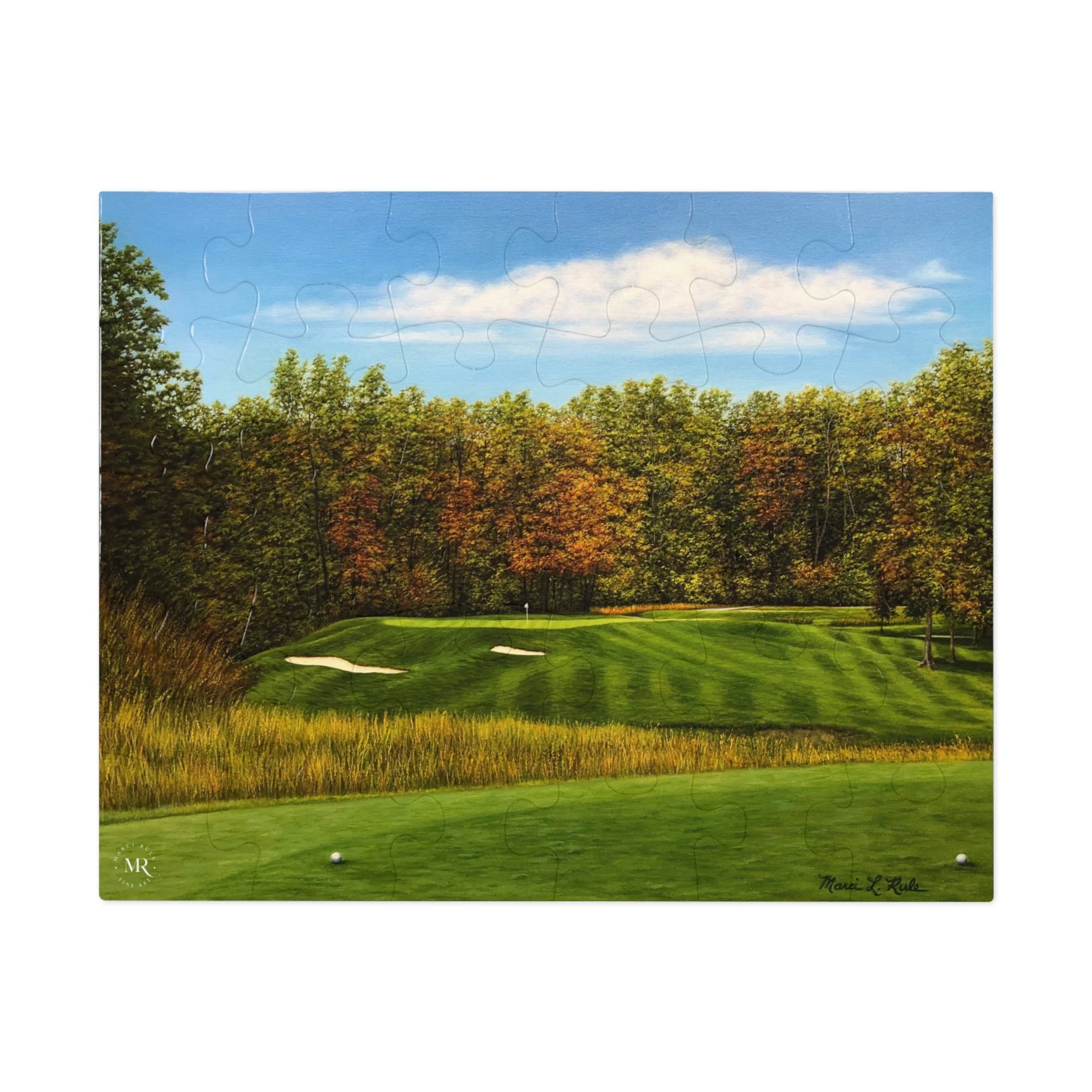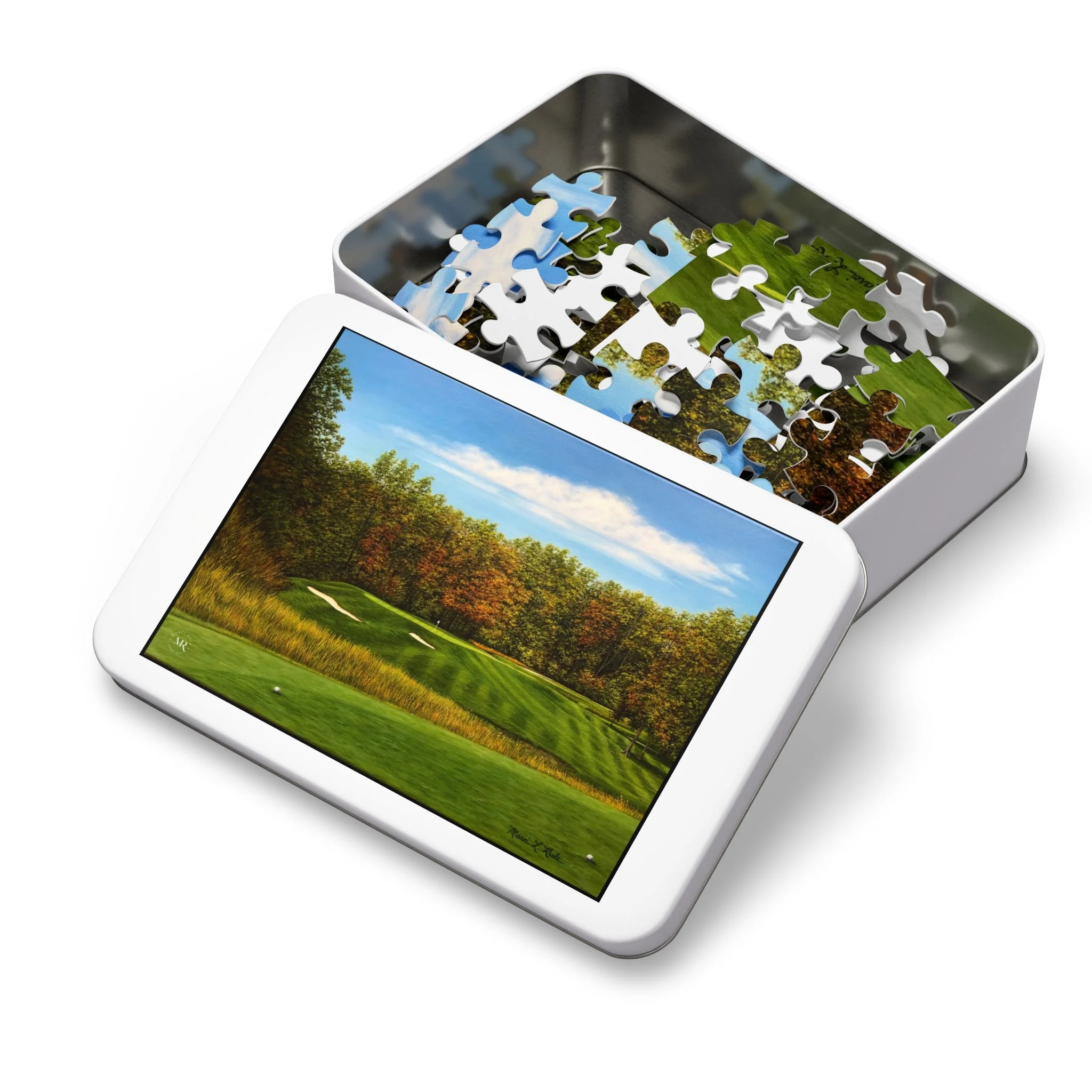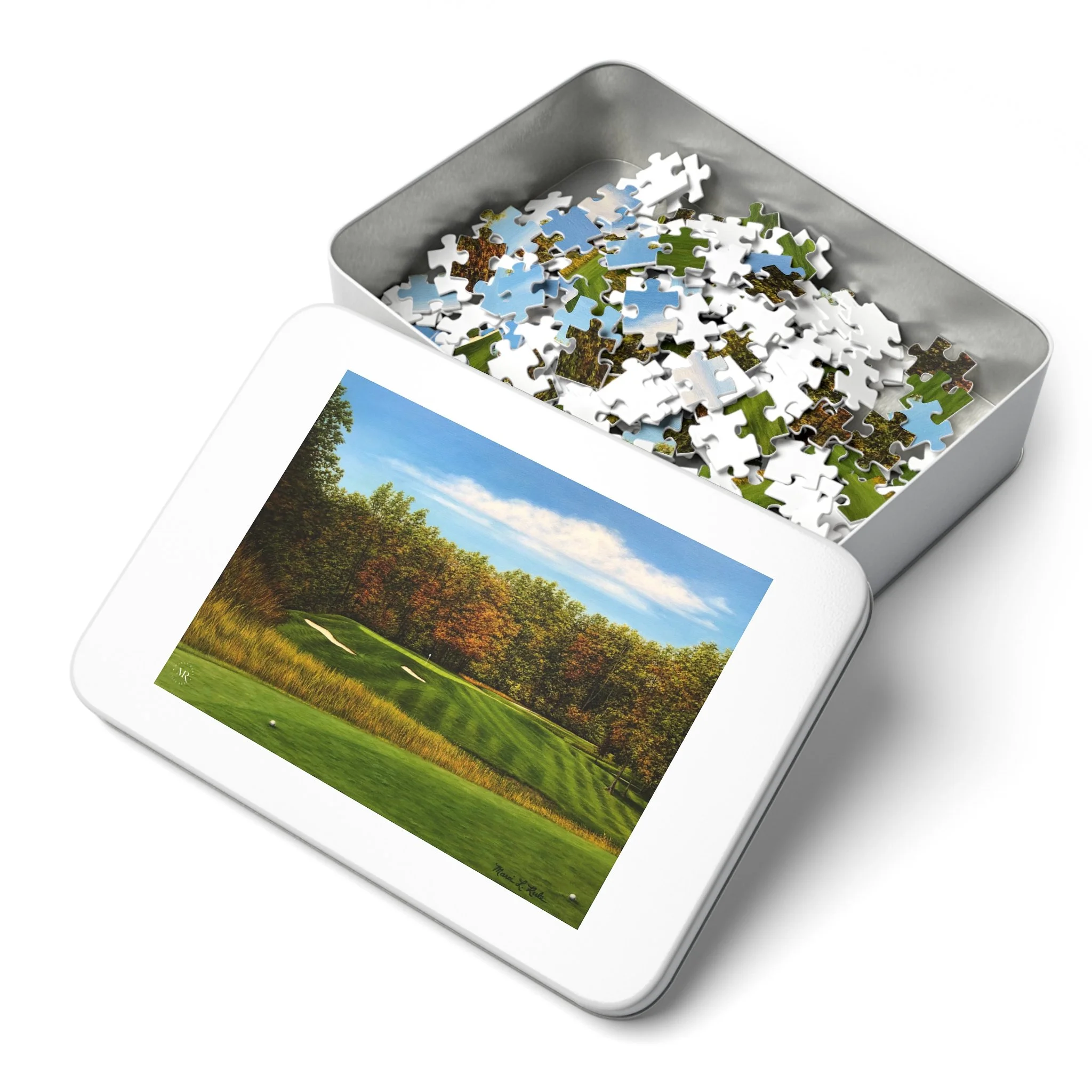 Jigsaw Puzzle with Tin: Woodland Hills Golf Course, Indiana Golf Art, Oil painting by Marci Rule