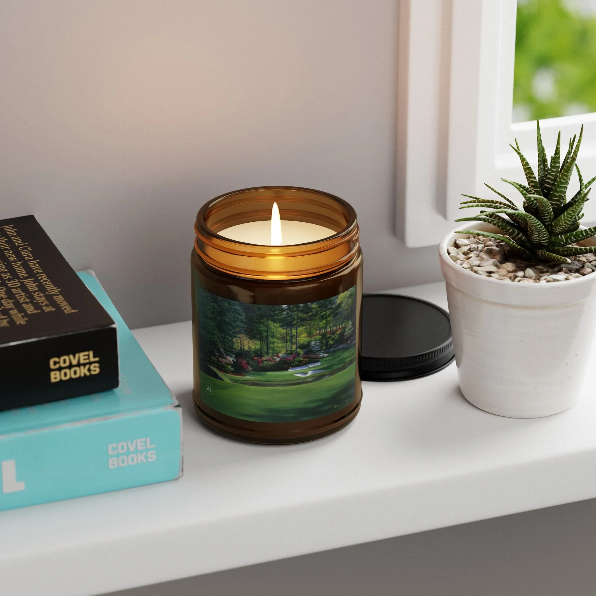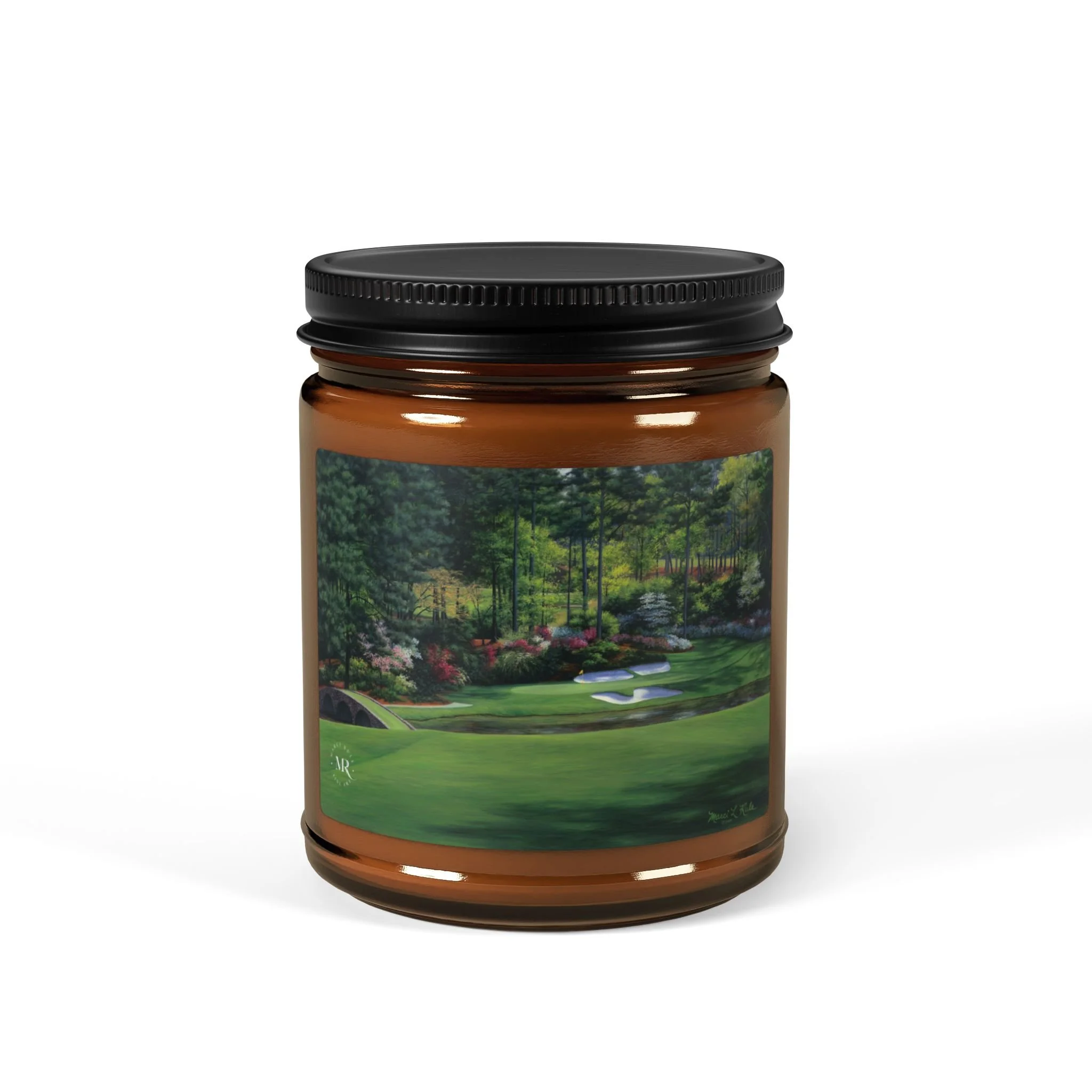 Scented Soy Candle-Oil Painting of Augusta National #12 by Artist Marci Rule, Amber Jar Home Decor Gift, 4oz, 9oz