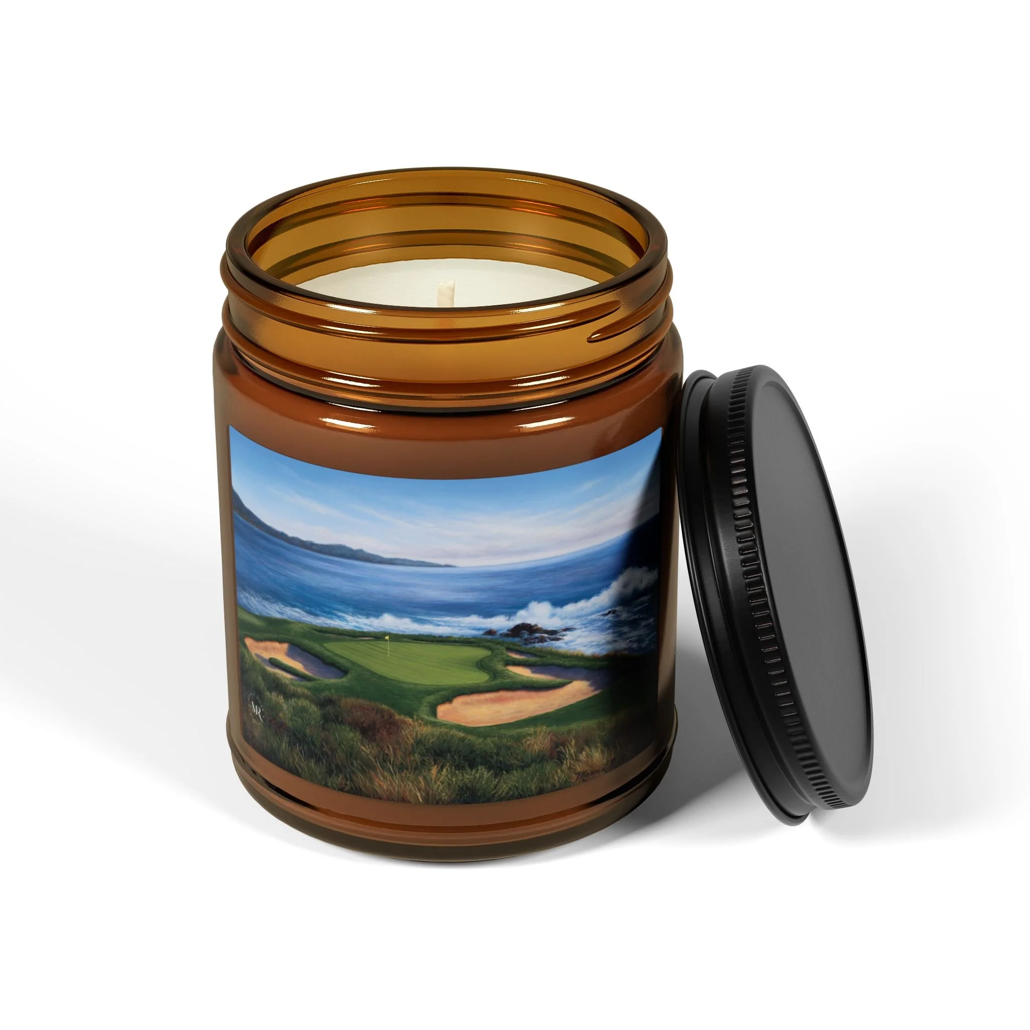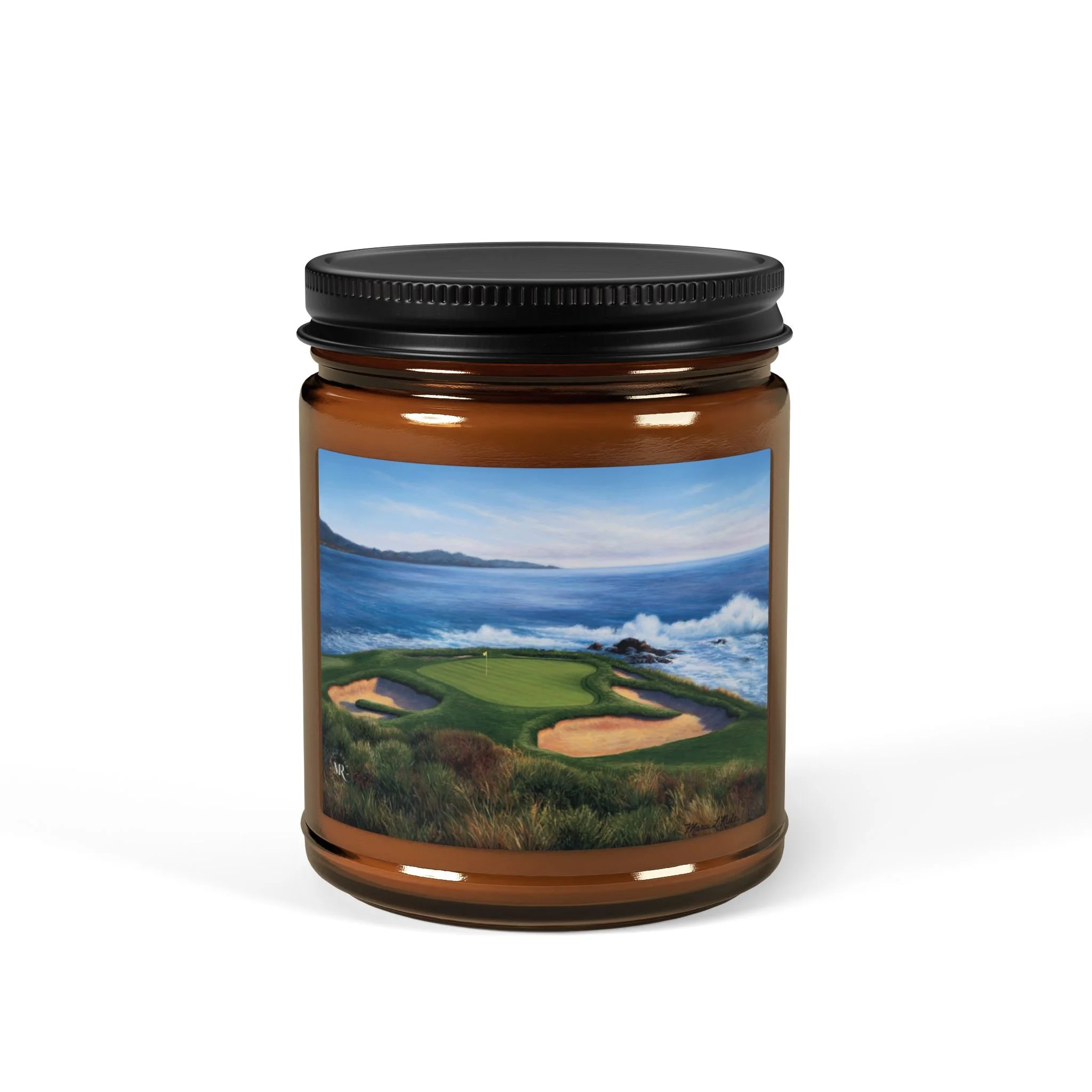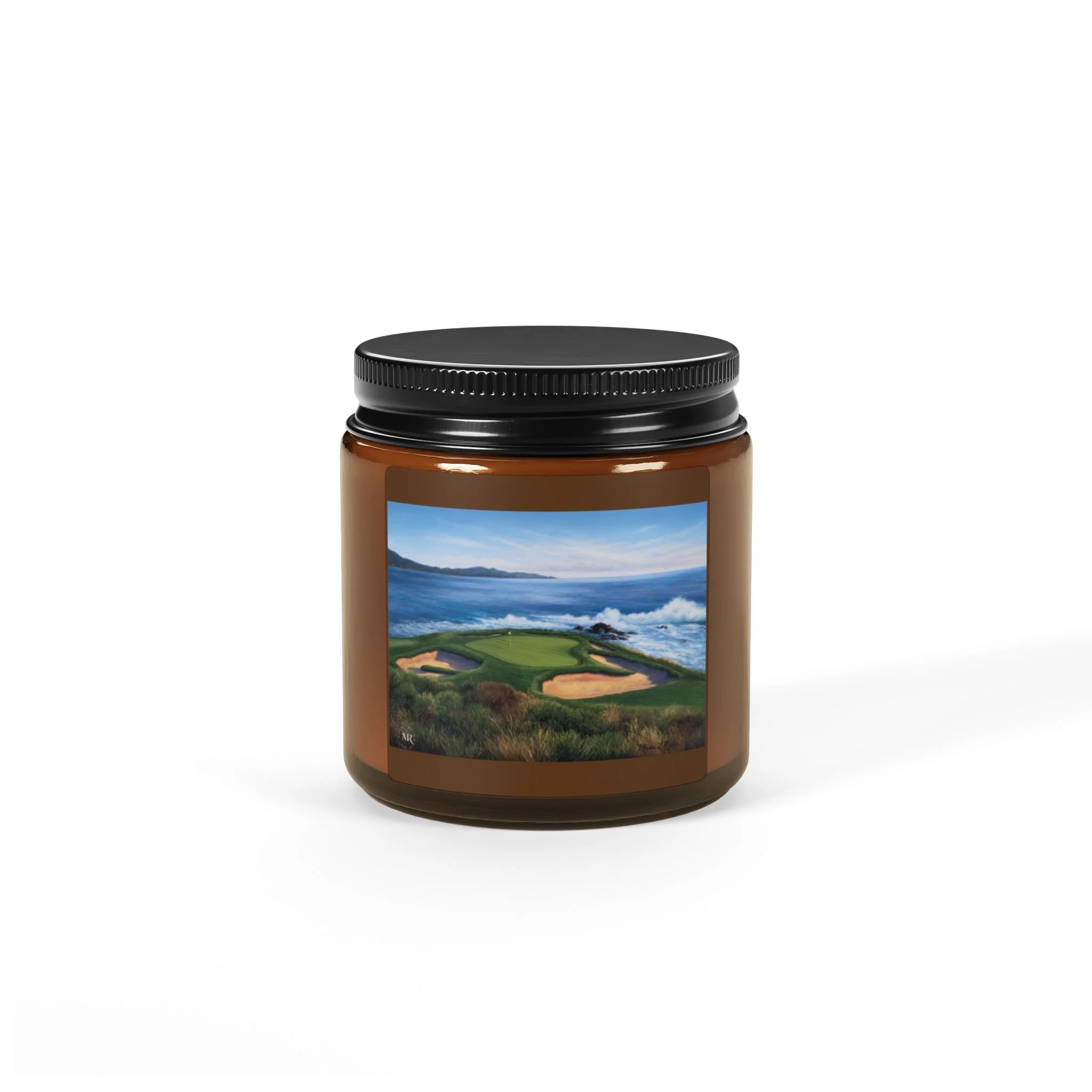 Scented Soy Candle-Oil Painting of Pebble Beach #7 by Artist Marci Rule, Amber Jar Home Decor, Gift, 4oz, 9oz