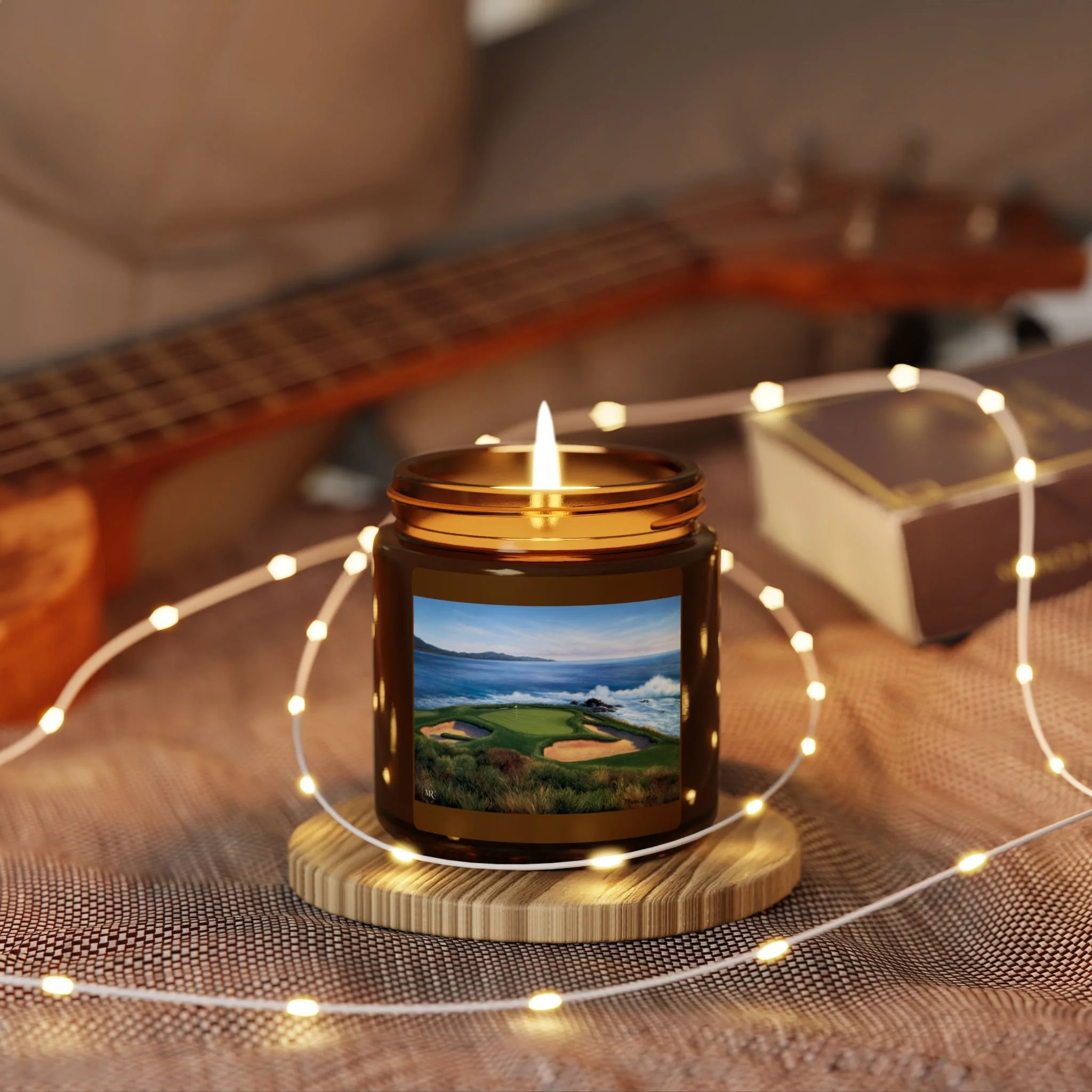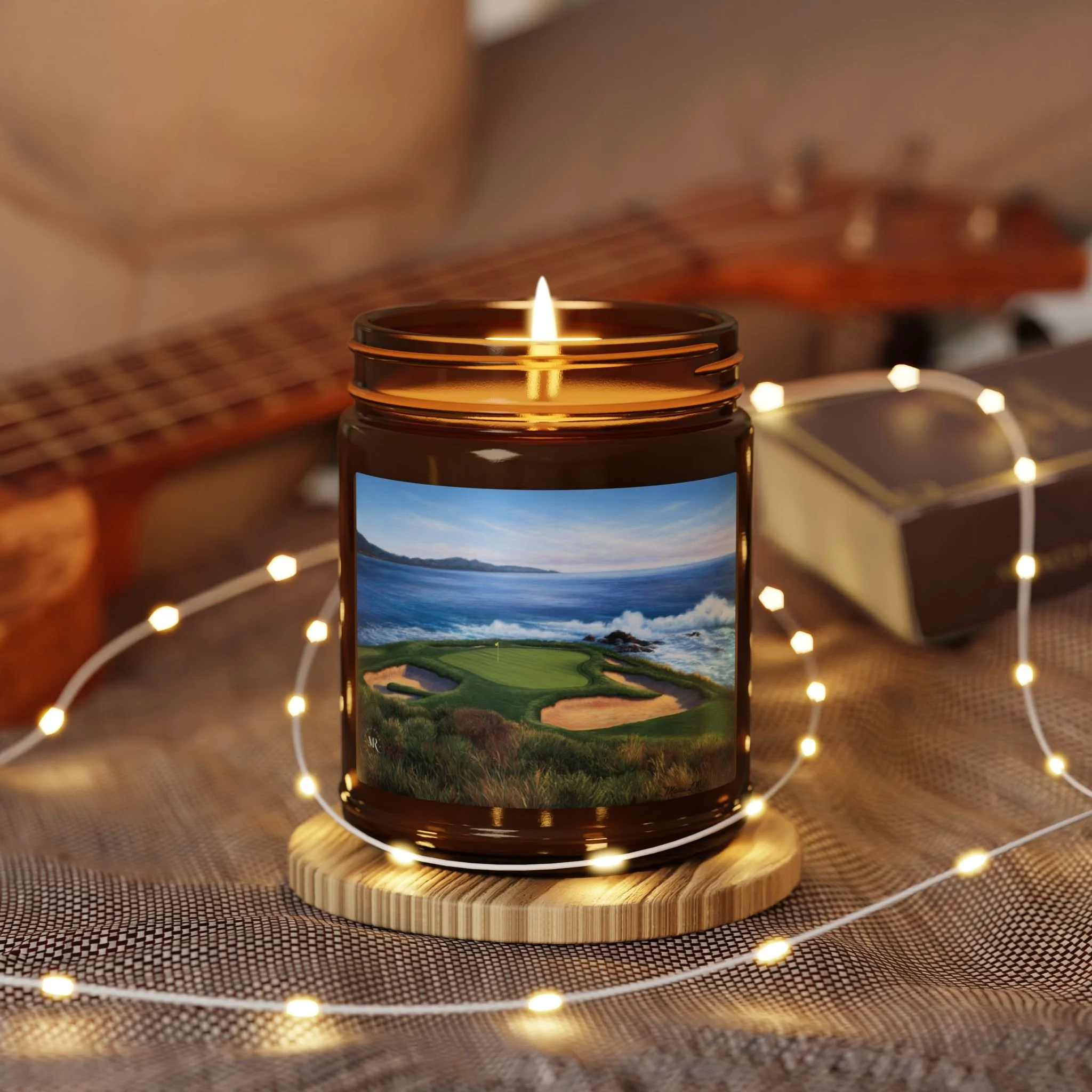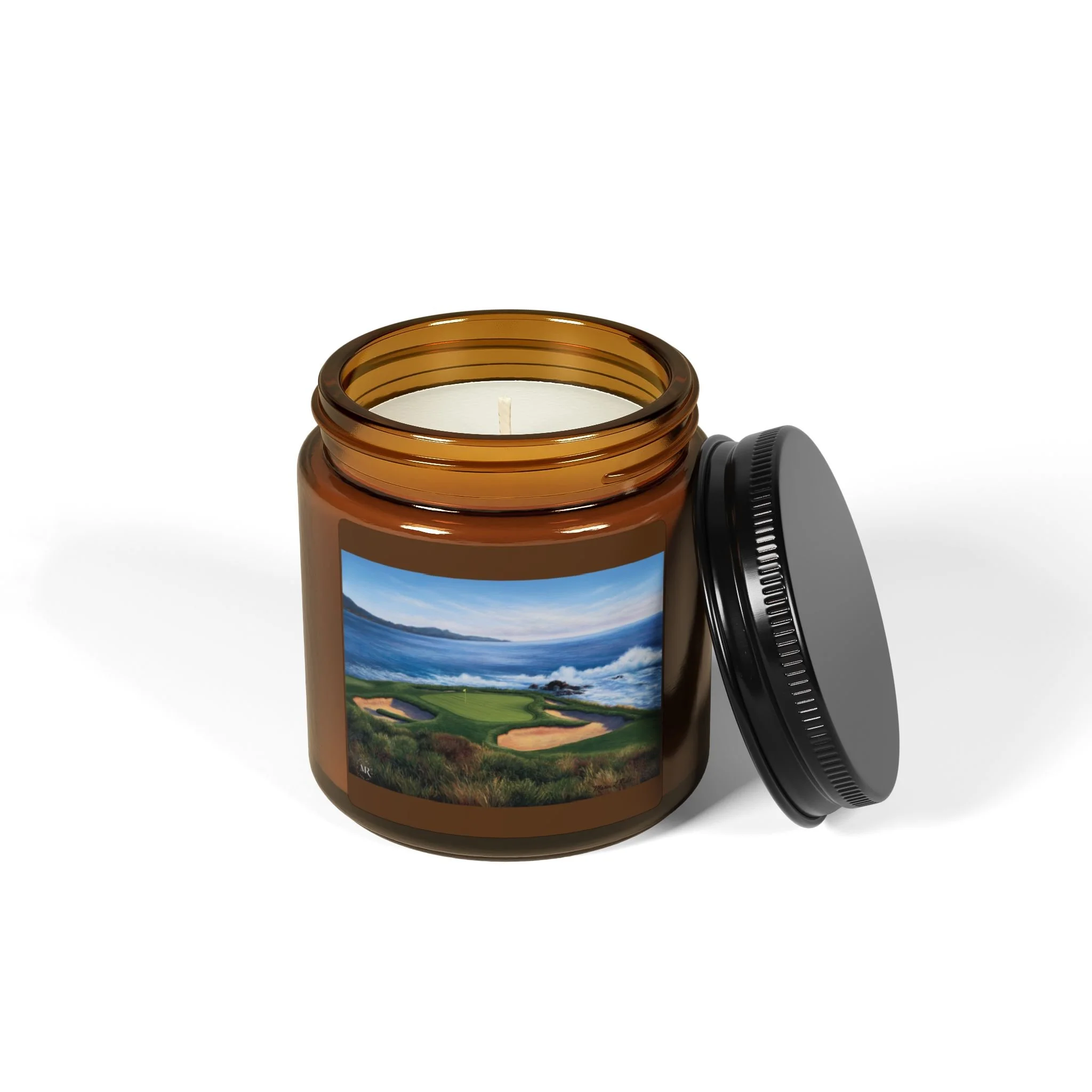 Scented Soy Candle-Oil Painting of Pebble Beach #7 by Artist Marci Rule, Amber Jar Home Decor, Gift, 4oz, 9oz