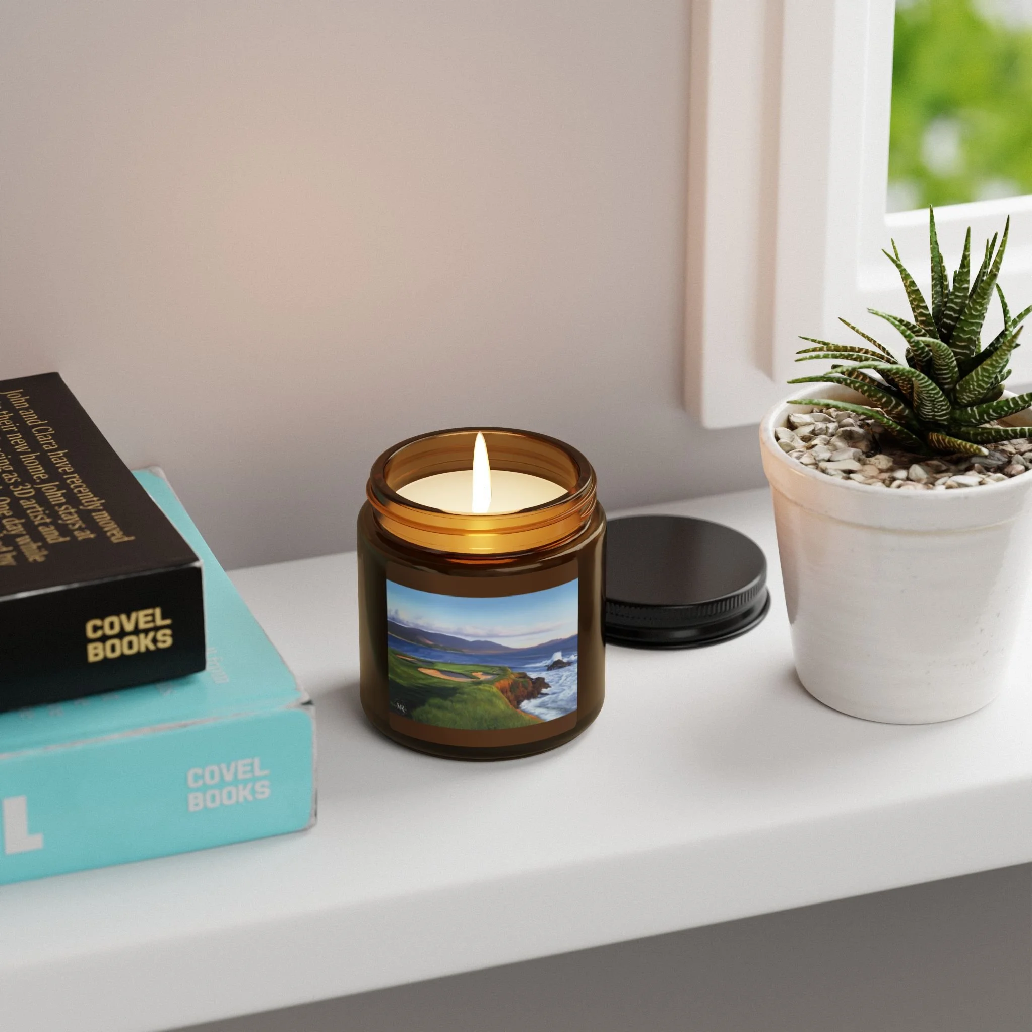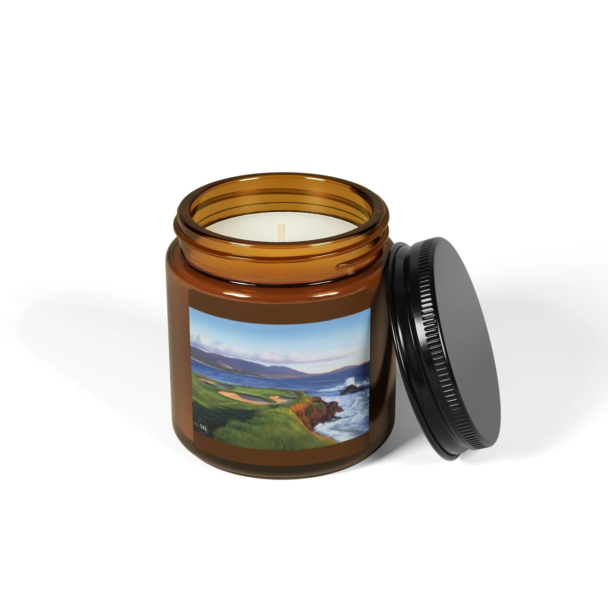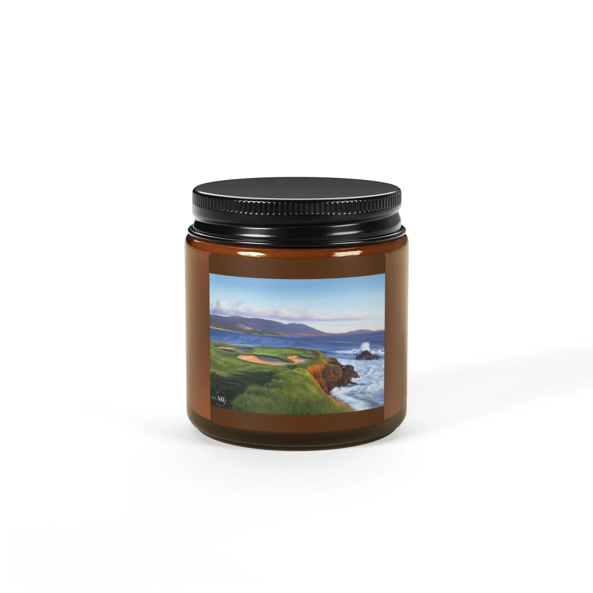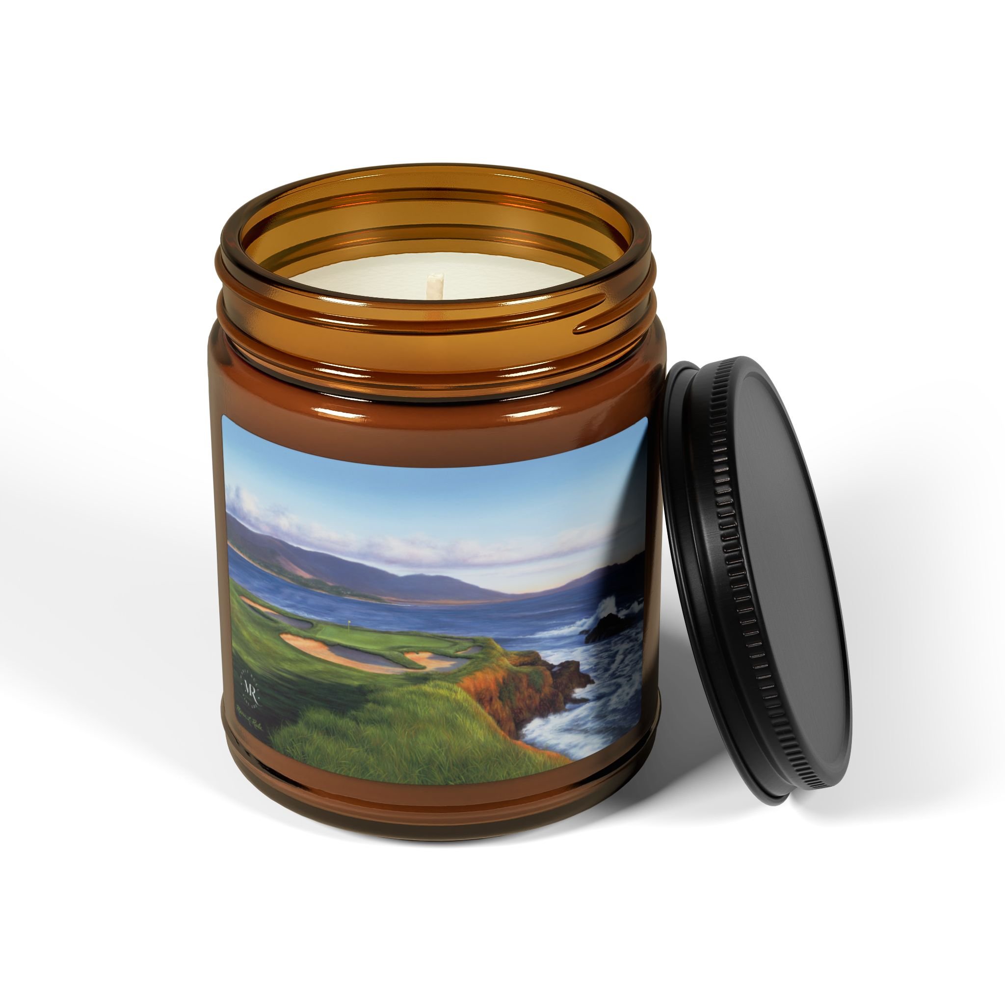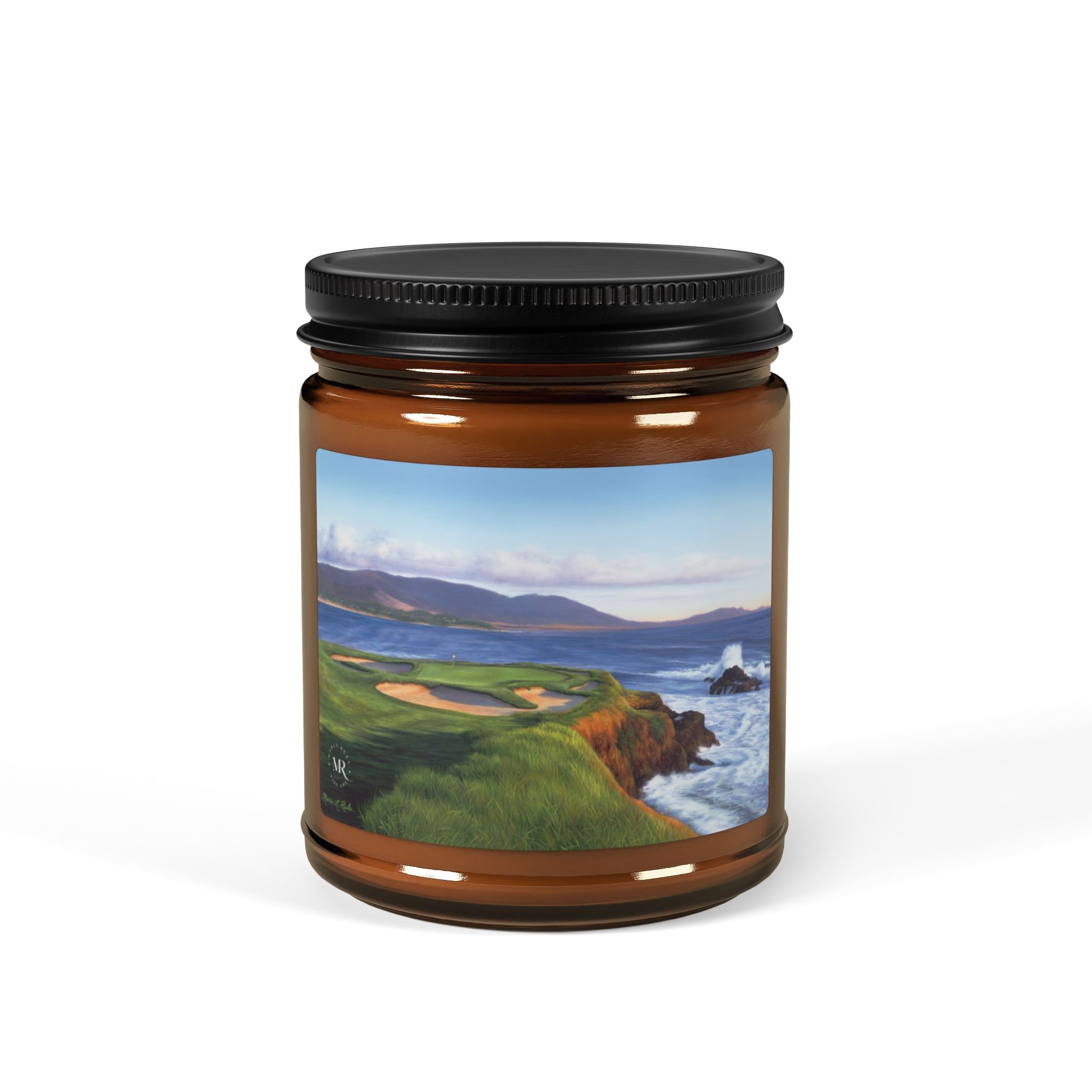 Scented Soy Candle-Oil Painting of Pebble Beach #7 by Marci Rule, Amber Jar Home Decor, Gift, 4oz, 9oz