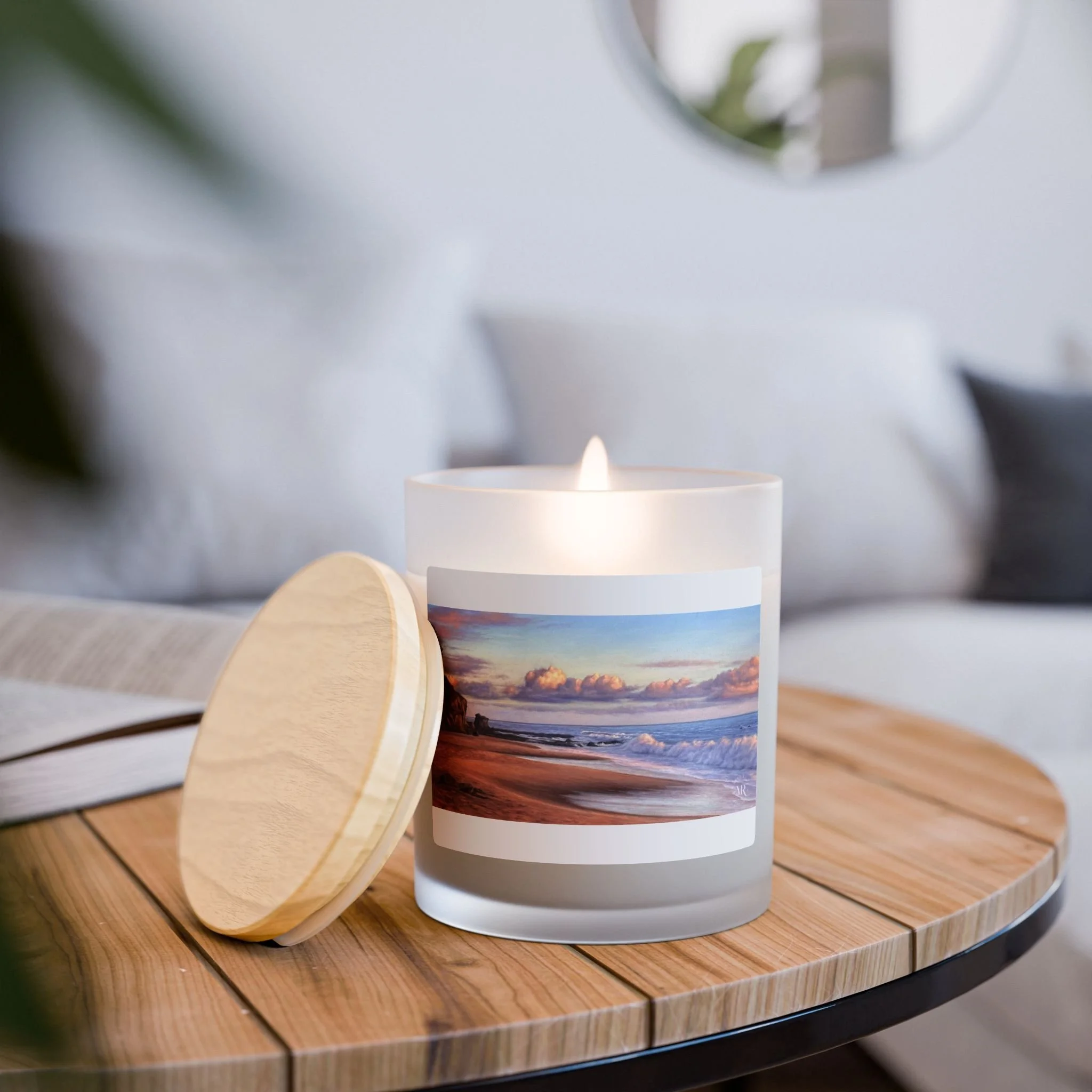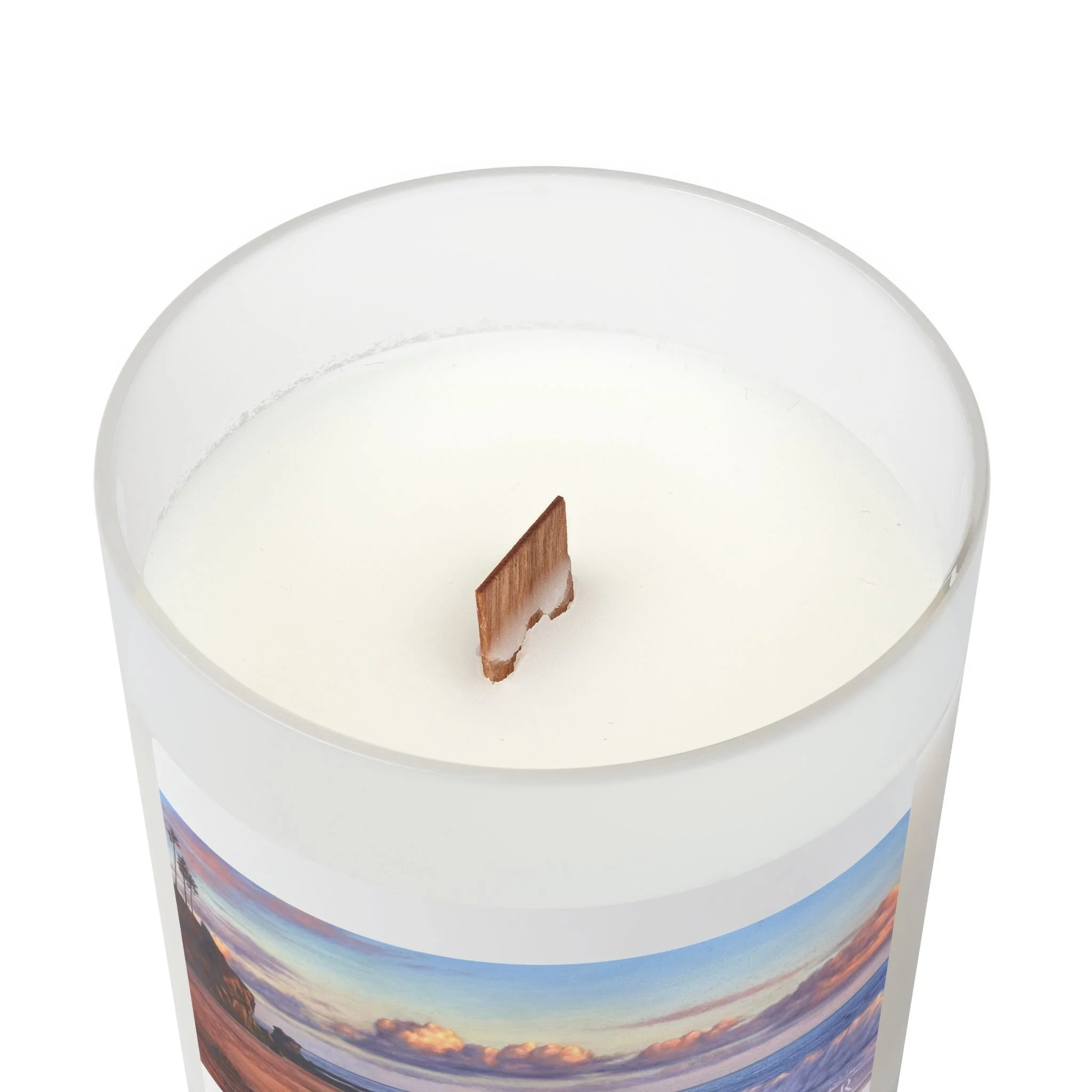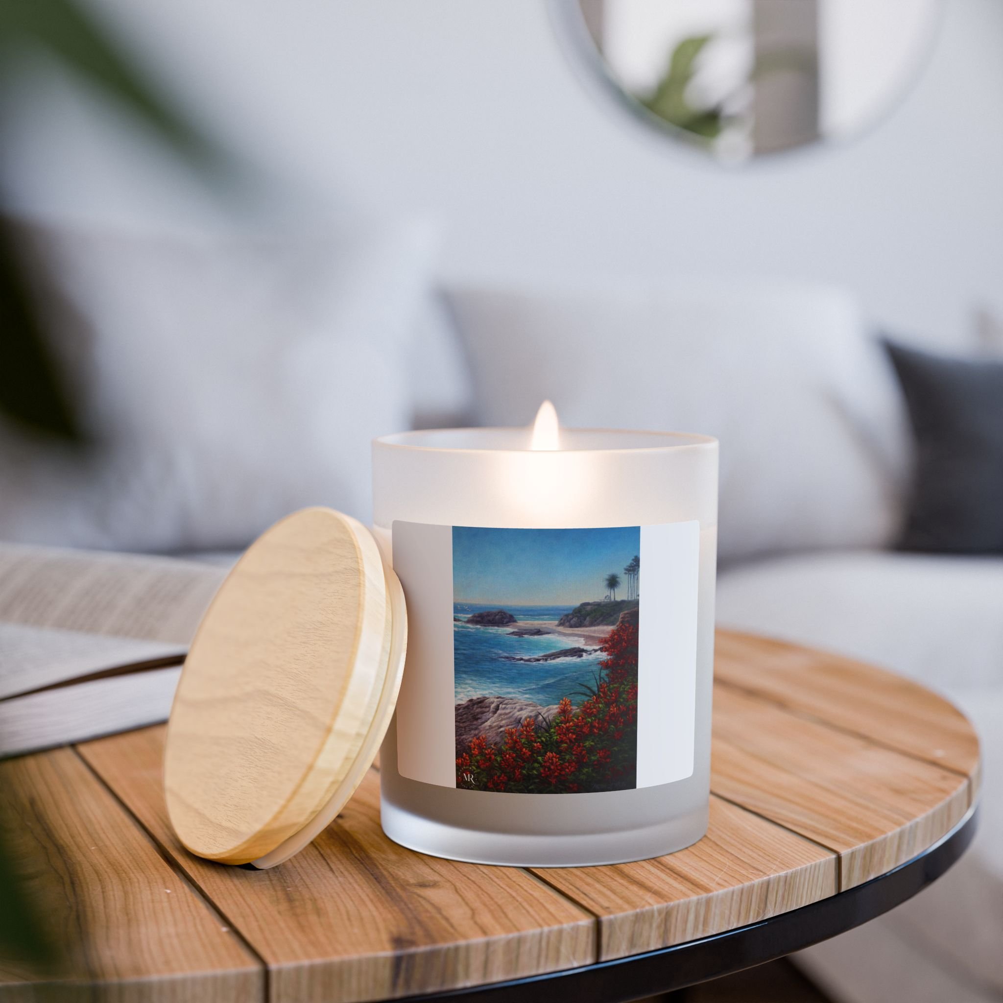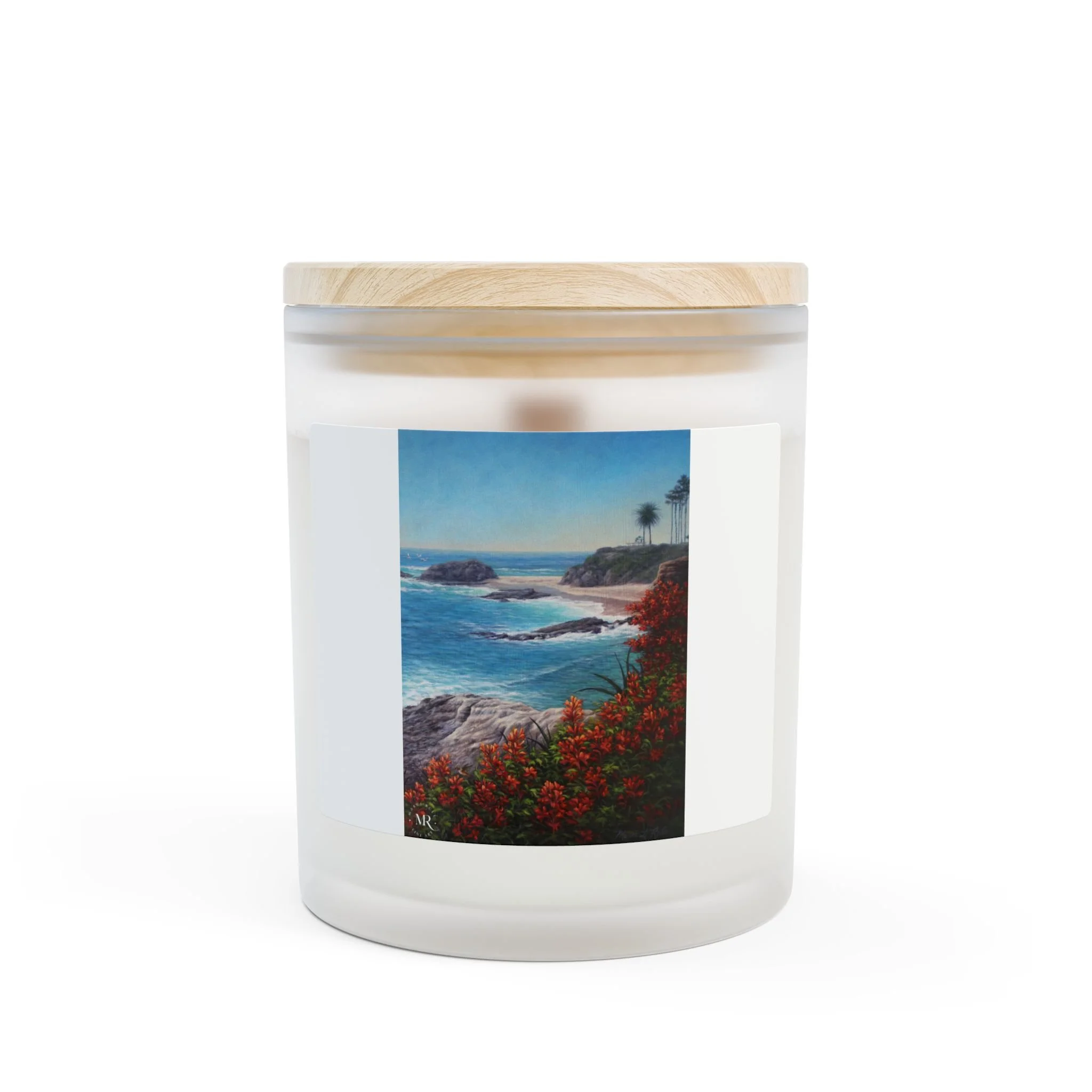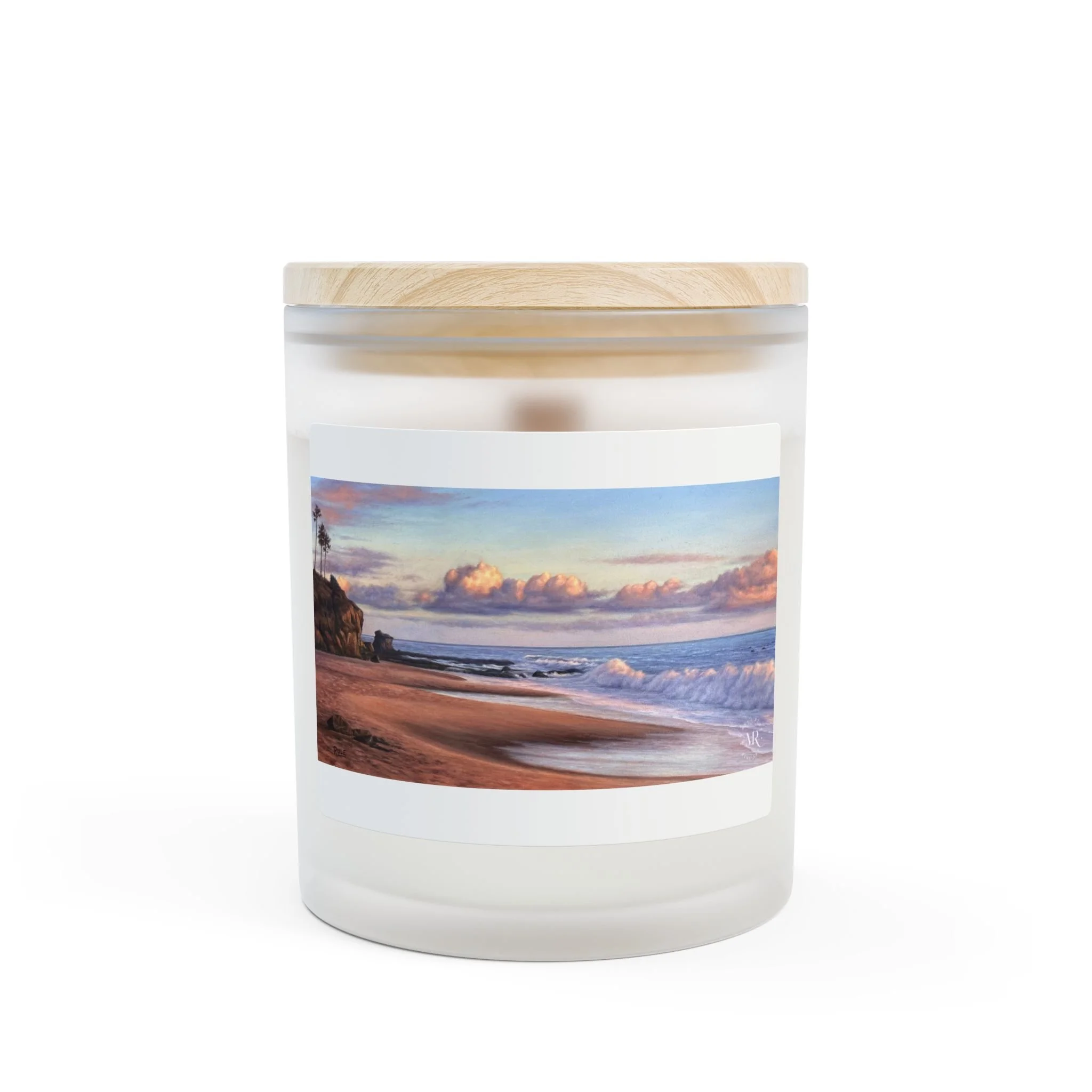 Close your eyes and imagine the hush of late afternoon on Treasure Island Beach — warm sand beneath your feet, the salt-tinged breeze. This frosted glass candle holds that moment. The soft, natural off-white glass and raw maple lid feel like coastal driftwood and sun-bleached boardwalks. Light the wooden wick and hear a gentle, soothing crackle as the scent unfurls, bringing the oil-painted colors of Laguna Beach into your living room. It fits into slow evenings, ocean-focused rituals, and the quiet routines of someone who collects memories of shorelines more than souvenirs. Hand-poured in the USA with a coconut-soy wax blend and clean, phthalate-free fragrance oils, it gives you long, uncomplicated burn time and the honest comfort of curated, natural materials.