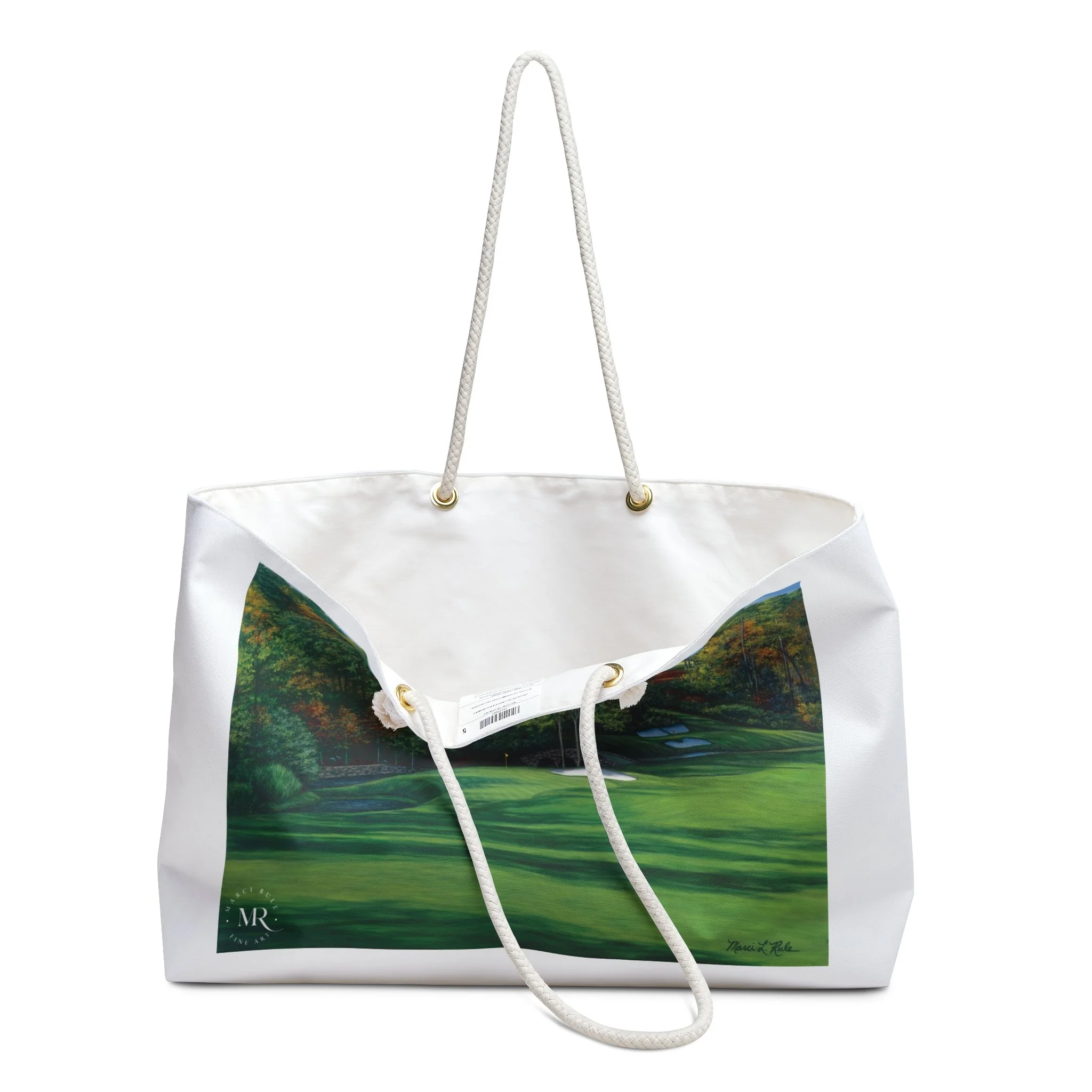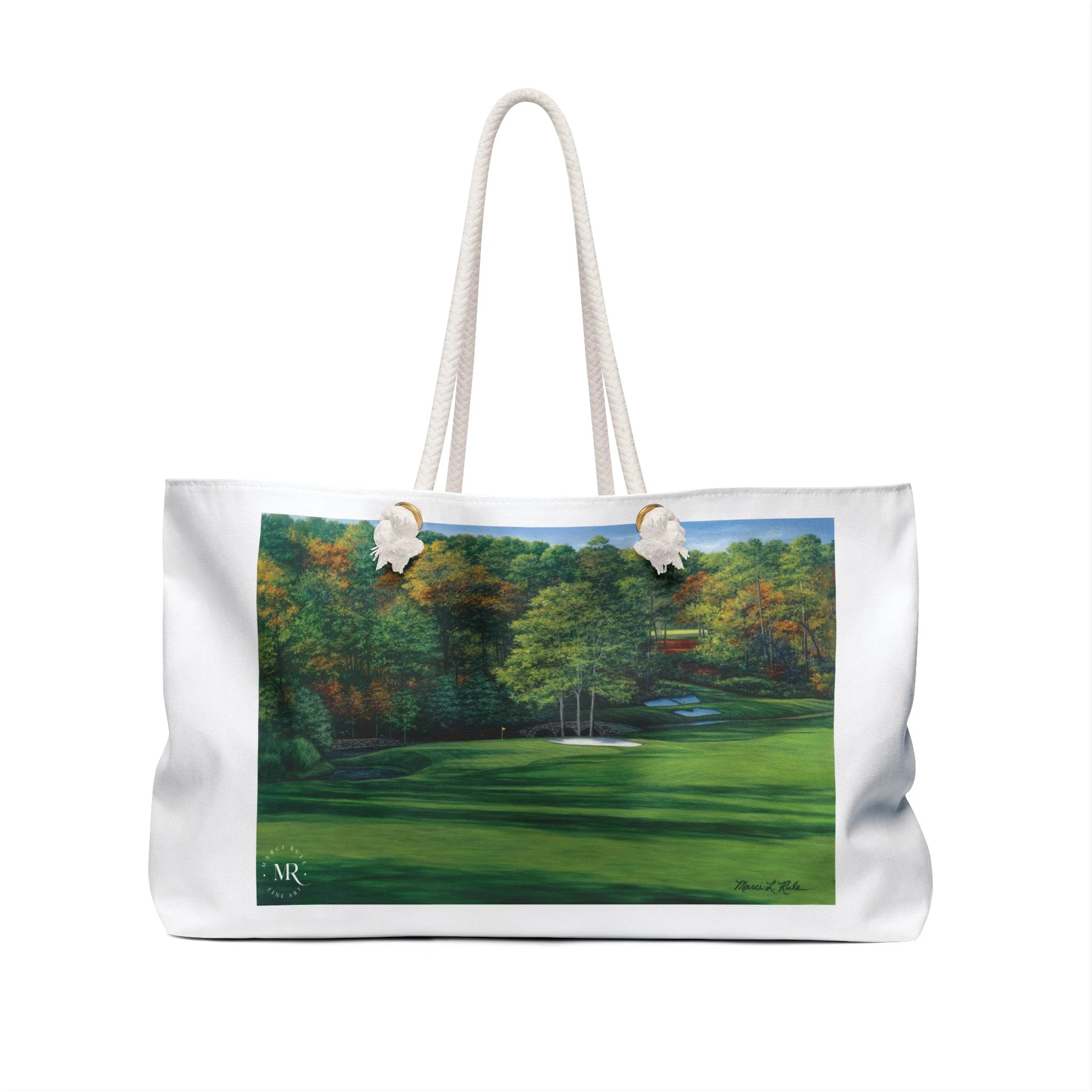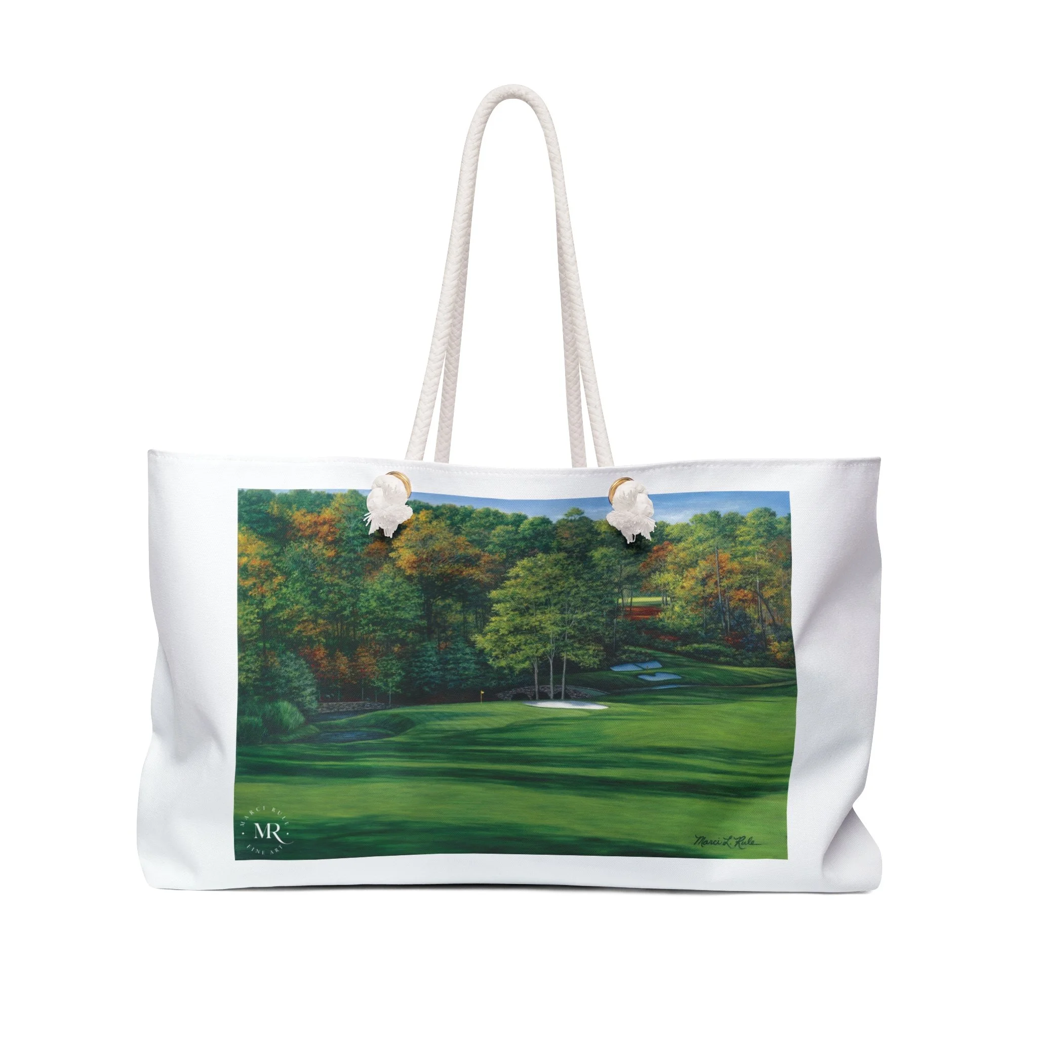 Weekender Tote Bag-Augusta National #11, Oil painting, Beach Lover Gift, Golf Course Art, Travel Duffel, White