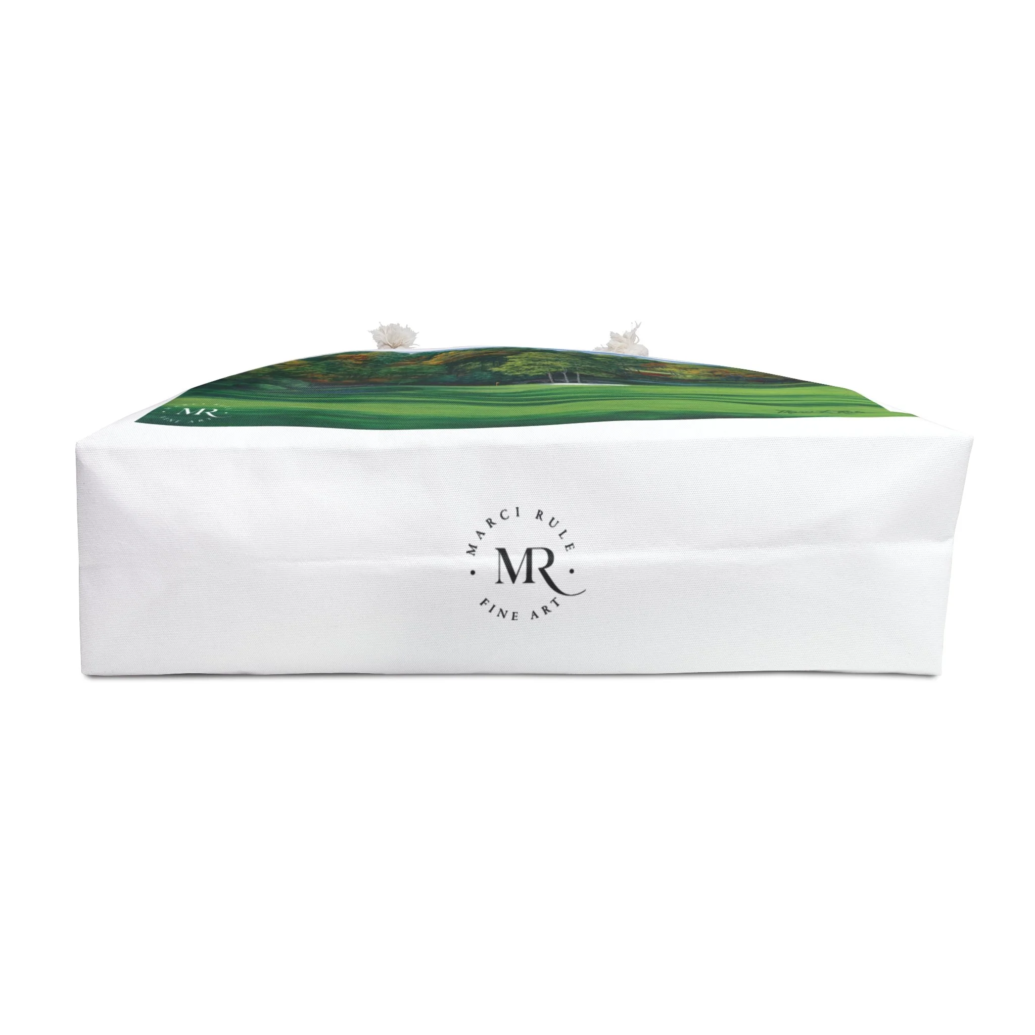 This white Weekender Bag features a beautiful oil painting of Augusta National #11 by Marci Rule, giving off a classy and sophisticated vibe. Perfect for weekend getaways, overnight stays, or as a carry-on duffel for travel enthusiasts. Ideal gifts for golf lovers and art enthusiasts, as well as special occasion gifts, including birthdays, Father's Day, groomsmen and best man gifts. Relevant for holidays, vacations, and weekend trips. Product features - 100% Spun polyester exterior - Rope handles with gold color metal grommets - One size: 24" x13" - Cream sheeting interior lining (50% cotton, 50% polyester) - Assembled in the USA Care instructions - Before cleaning the bag, remove all the items from the bag. Suggested to pretreat visible stains with stain remover. Mix warm water with laundry detergent and clean the bag with terry washcloth or soft bristle brush. Let the bag air dry.