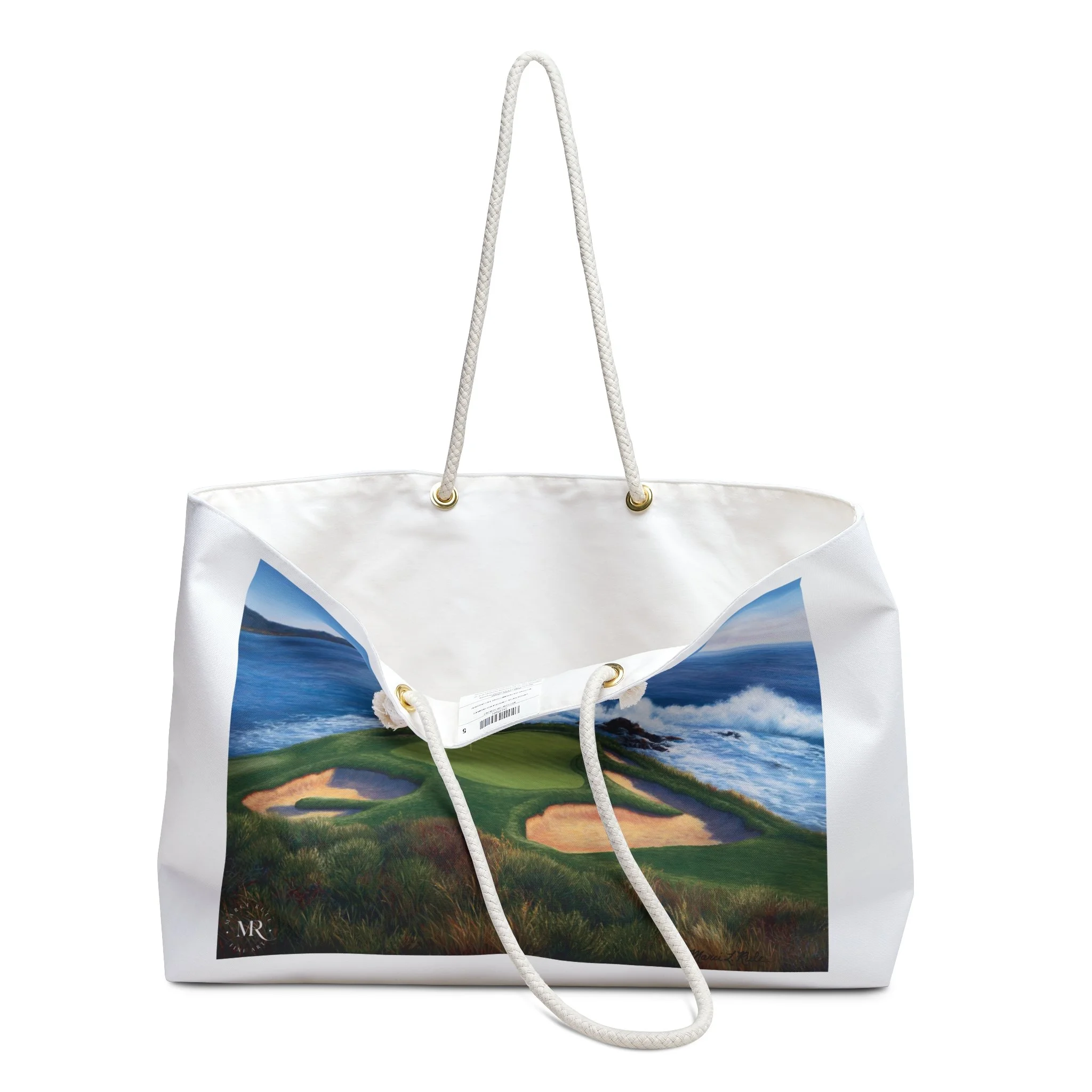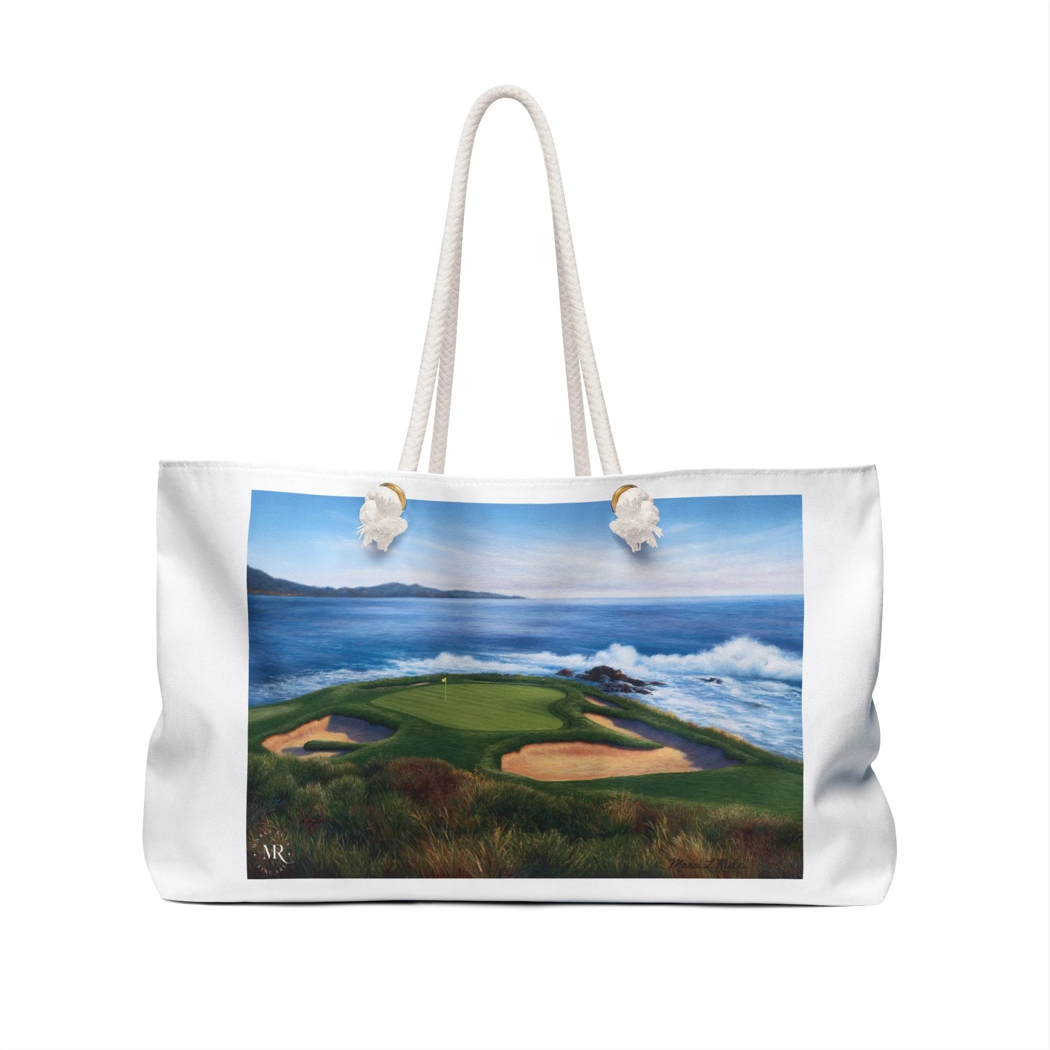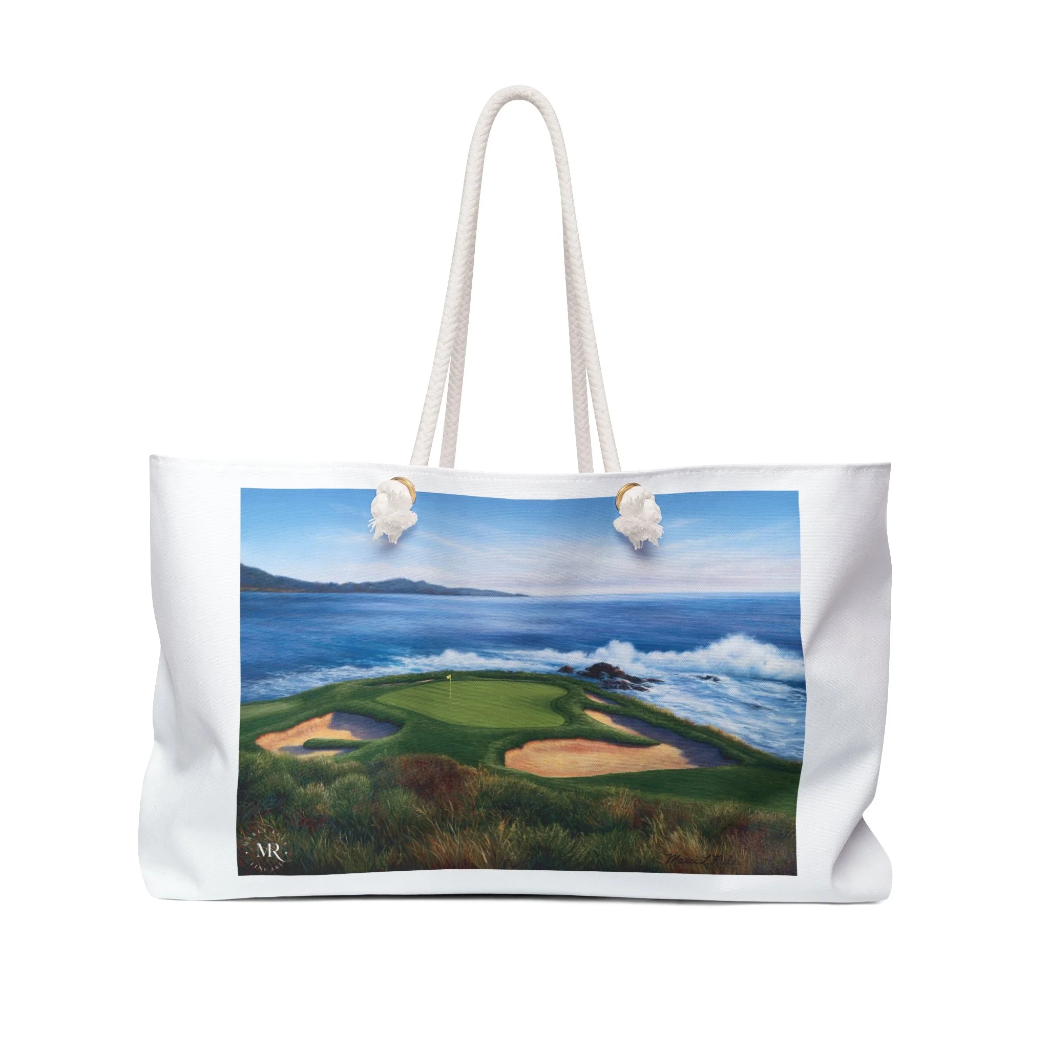 Weekender Tote Bag-Pebble Beach #7, Oil Painting, Beach Lover Gift, Golf Course Art, White Travel Duffel
