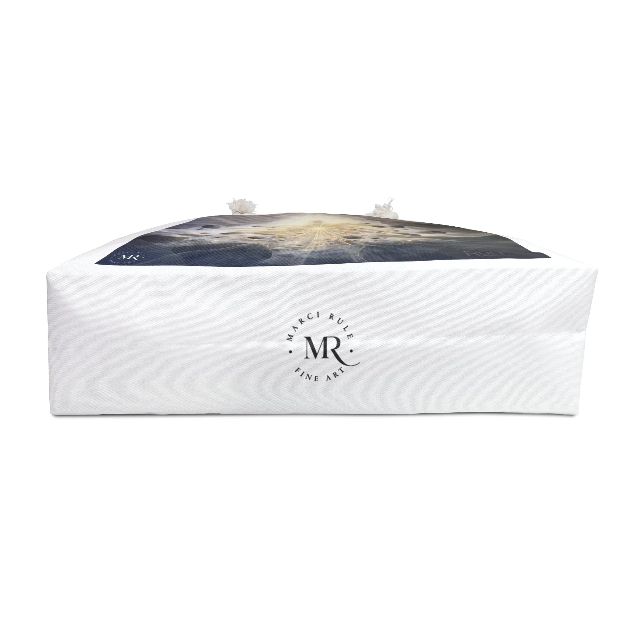 Weekender Tote, Dream inspired Oil Painting, "Believe...I Am", God Image, Spiritual Faith Gift, Travel Duffel, White